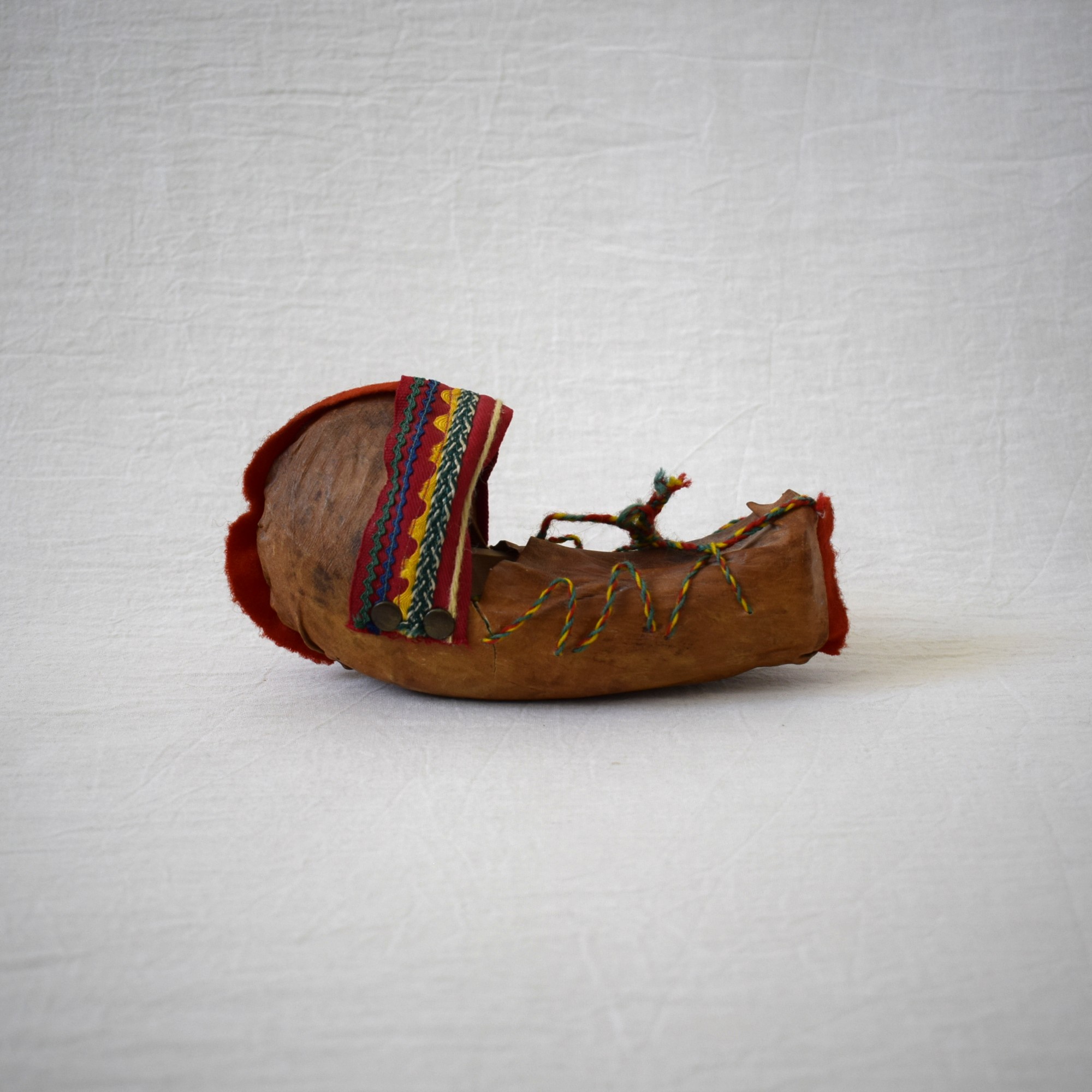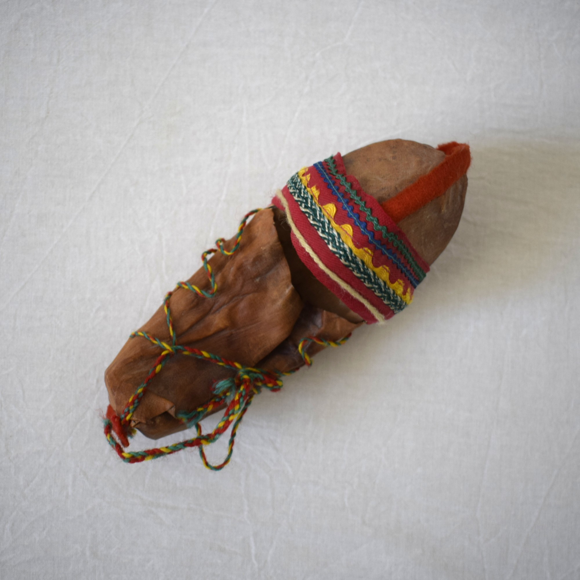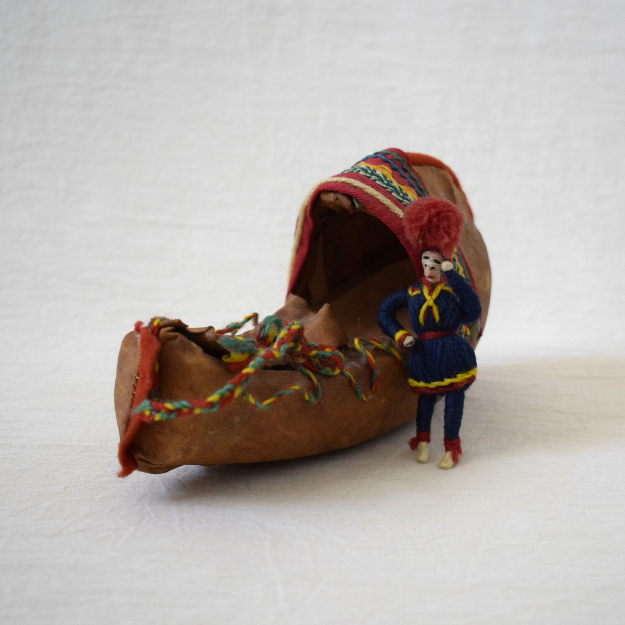 中は木材で、外側はトナカイの革やリボンでデザインされています。
