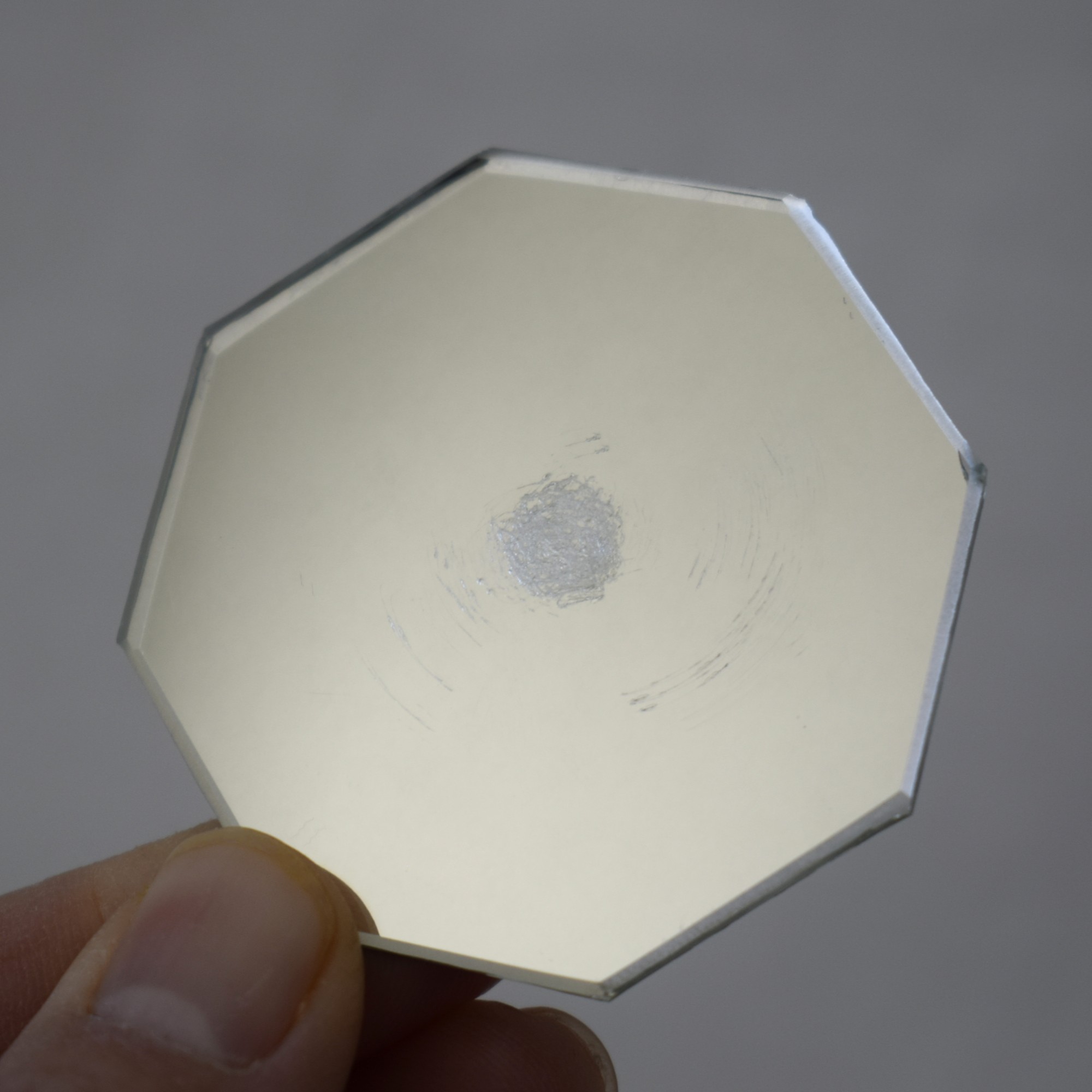 アクアブルーが更に映えるように、小さな六角形の鏡を一緒にお付けします。