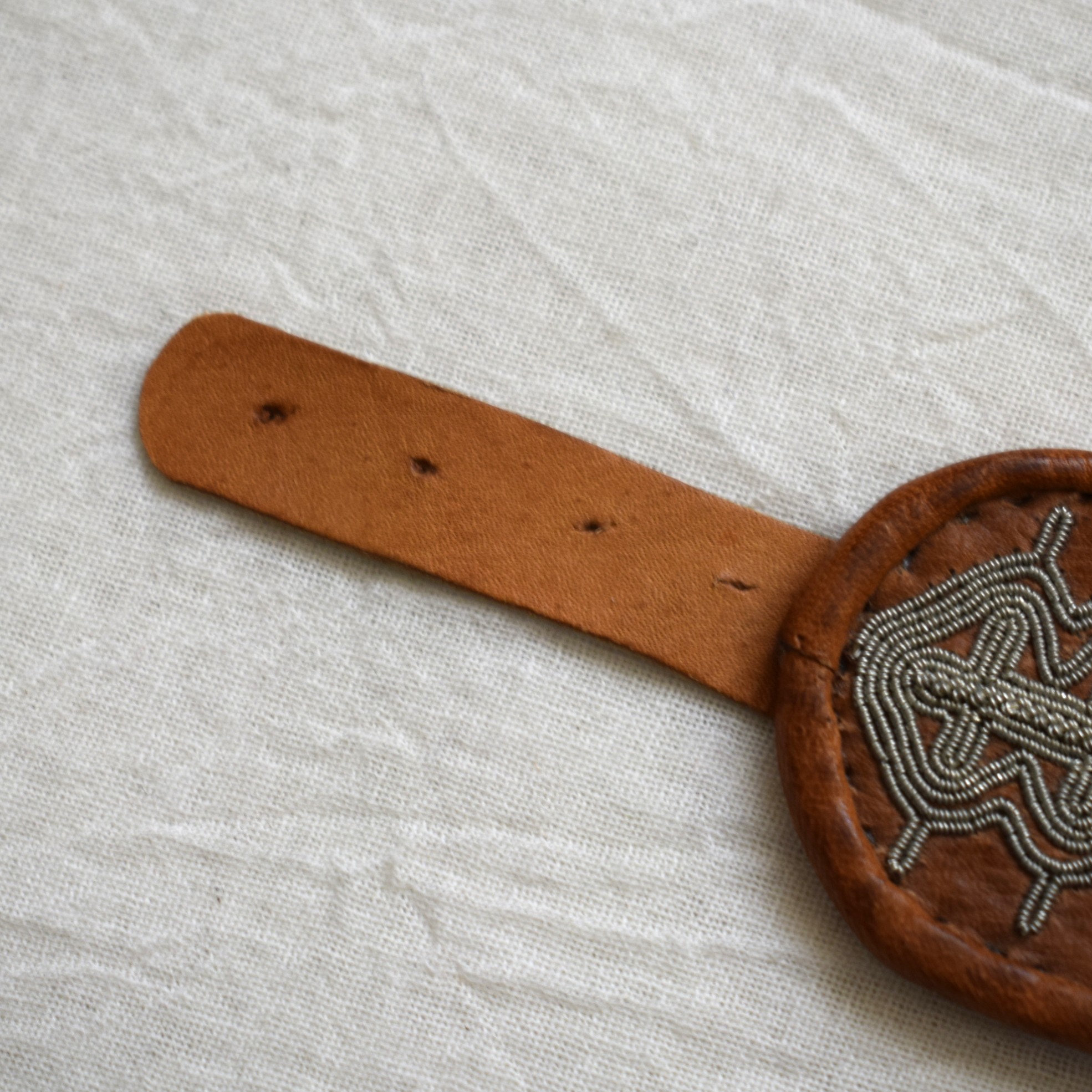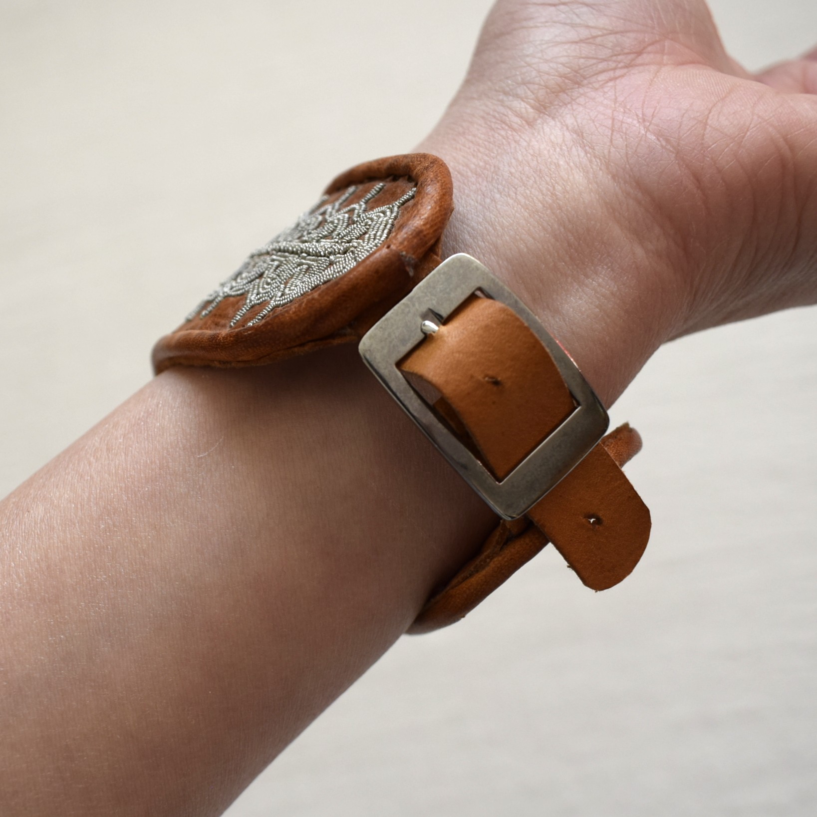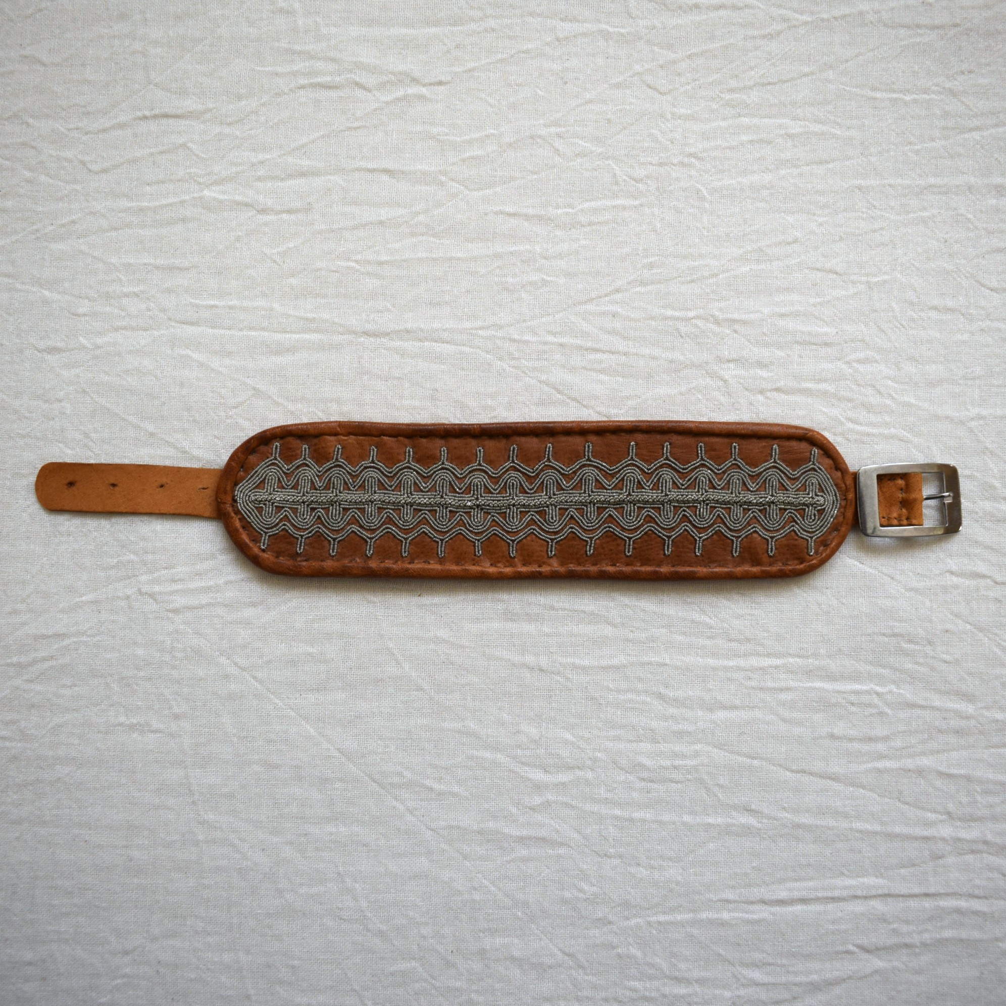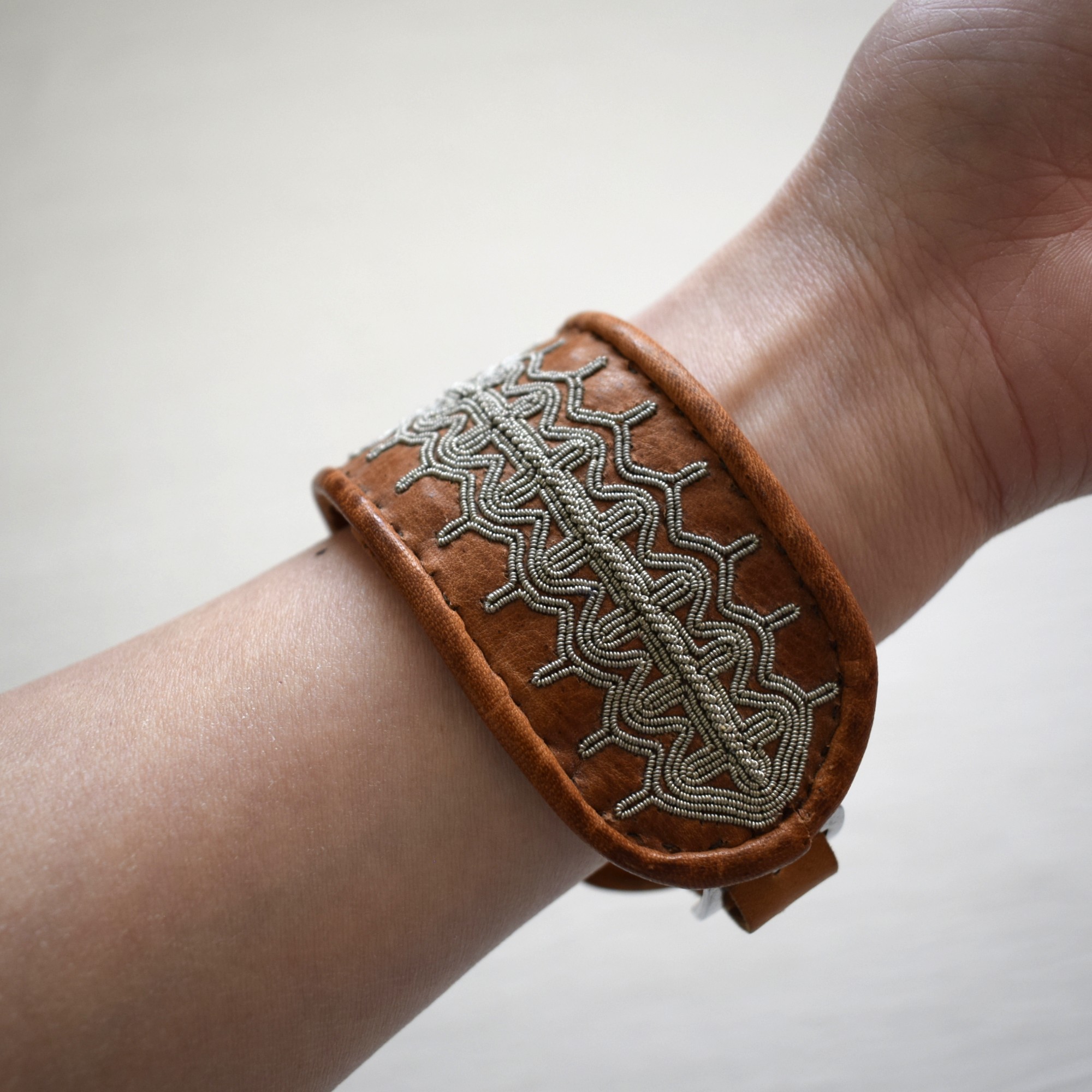サーミ族の伝統工芸品の一つ、ピューター刺繍が施されたブレスレットをご紹介します。