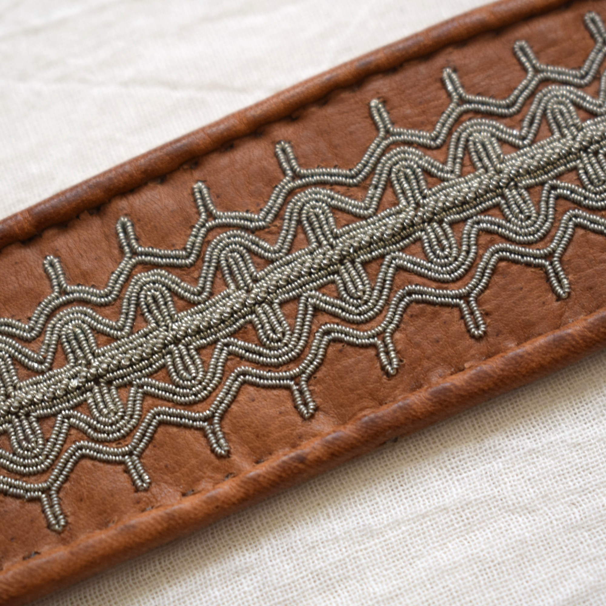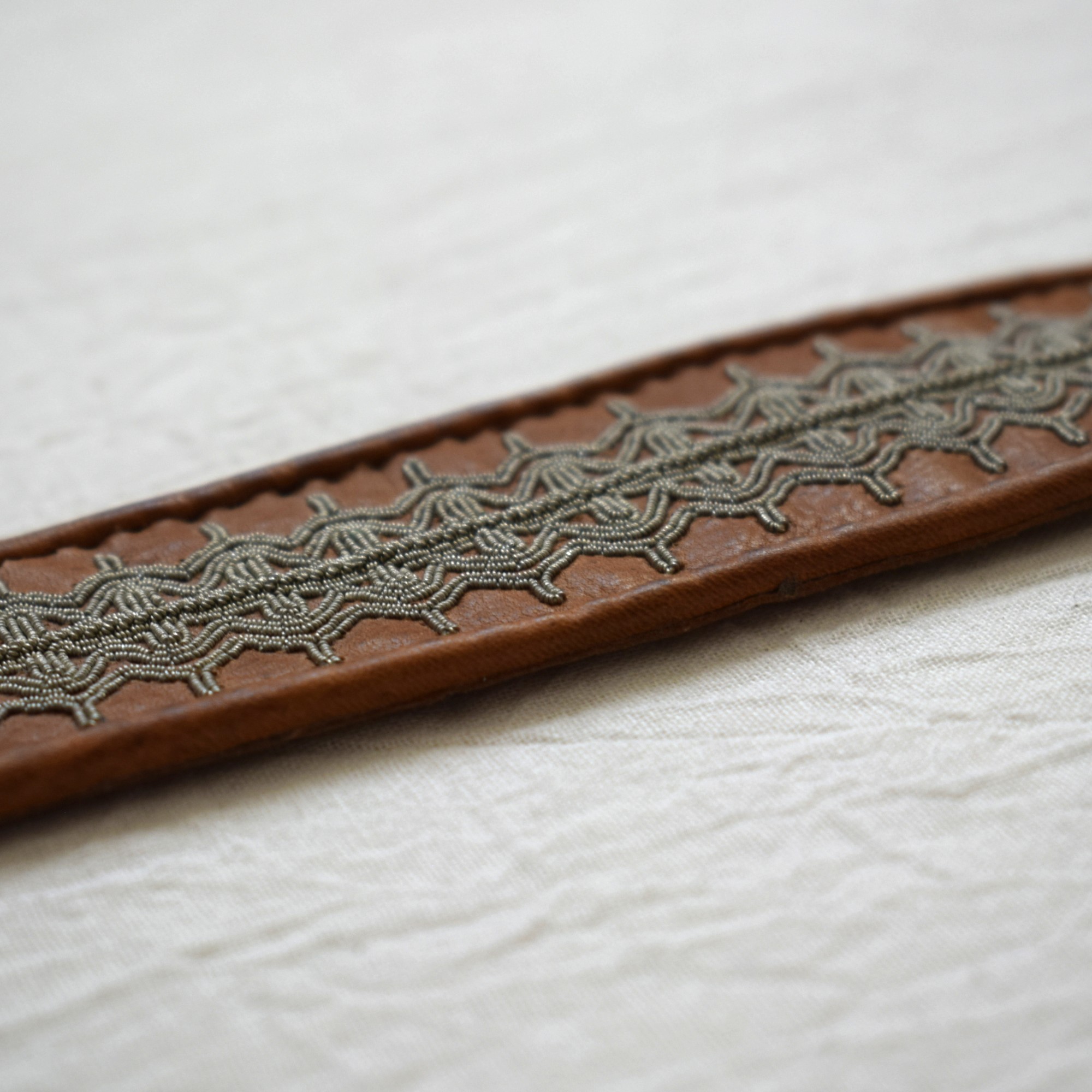 こちらの作品は幅広で綺麗な刺繍が目を引きます。