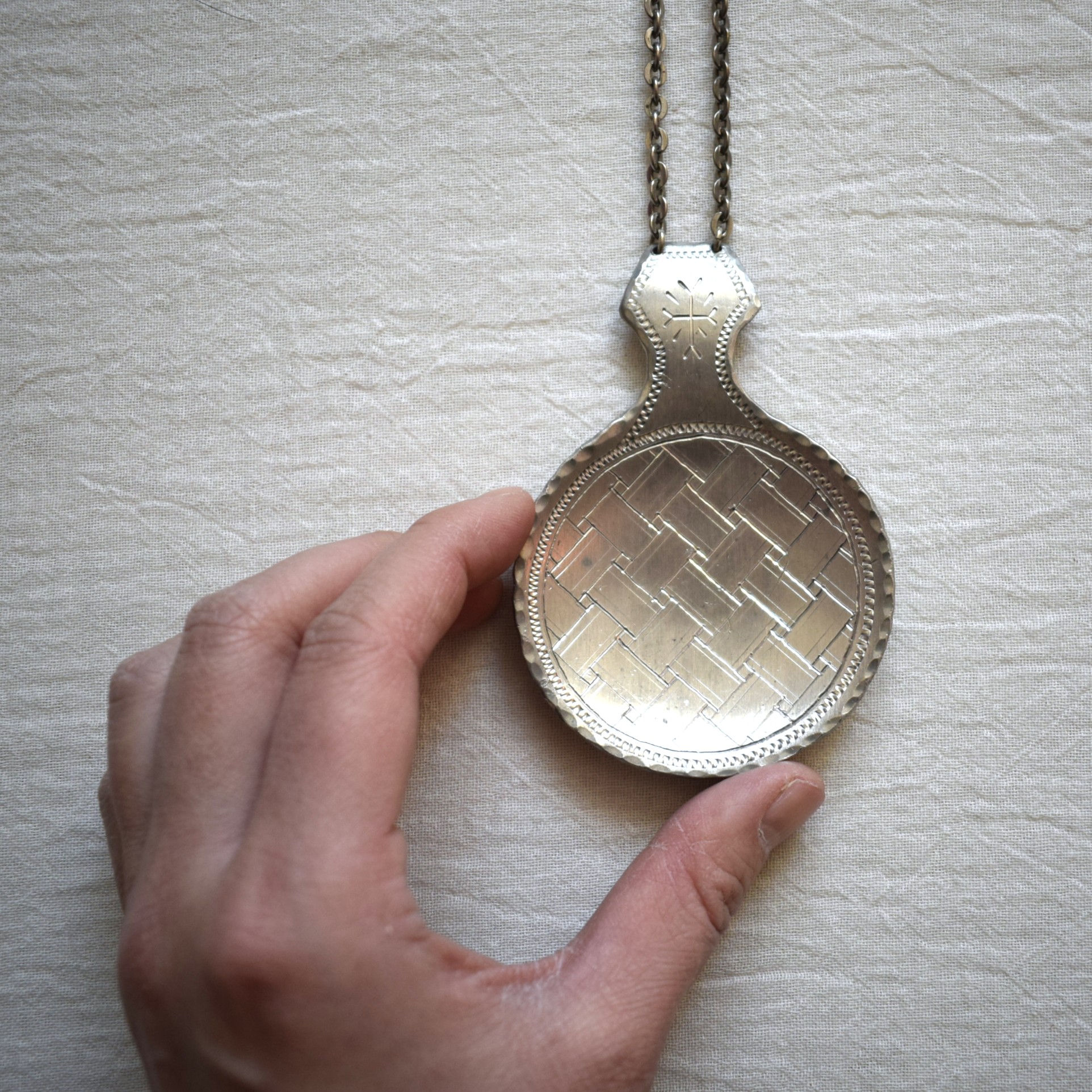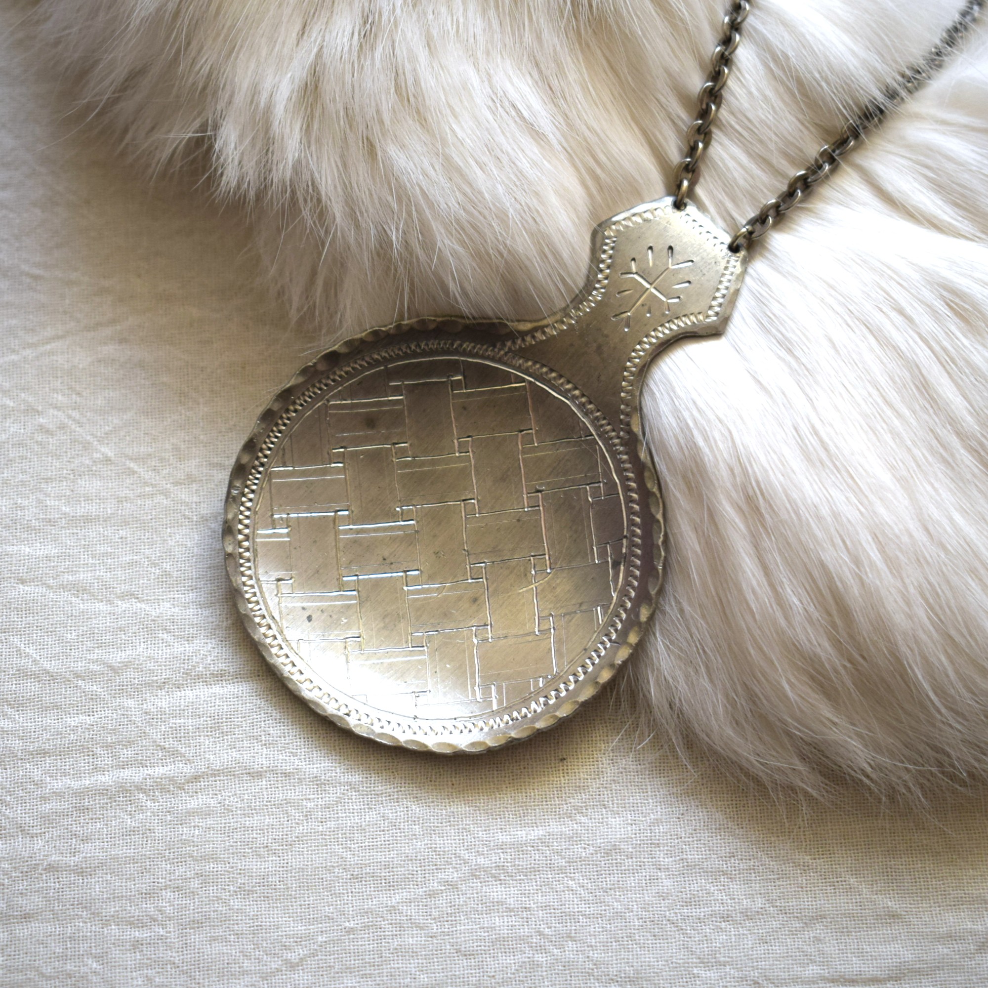 サーミ族の伝統工芸品の一つ、ピューター製のネックレスをご紹介します。
