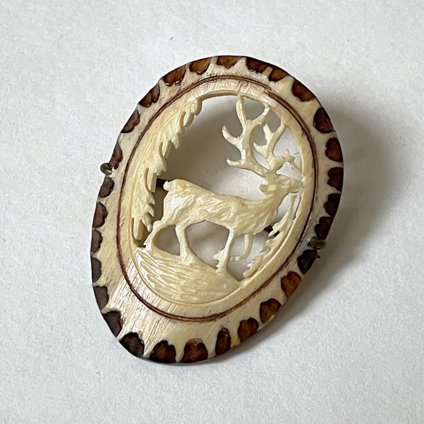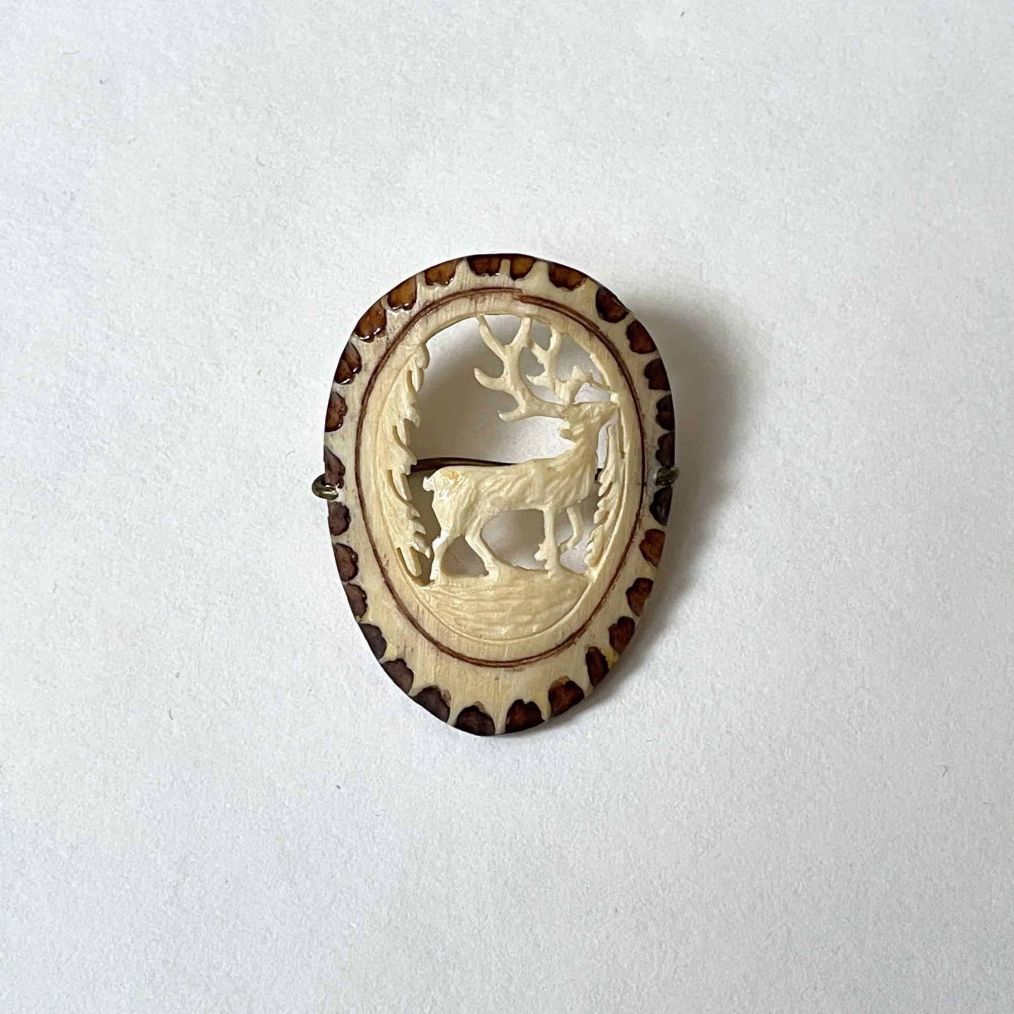 トナカイのブローチ・角細工 / 縦長オーバル・スウェーデン