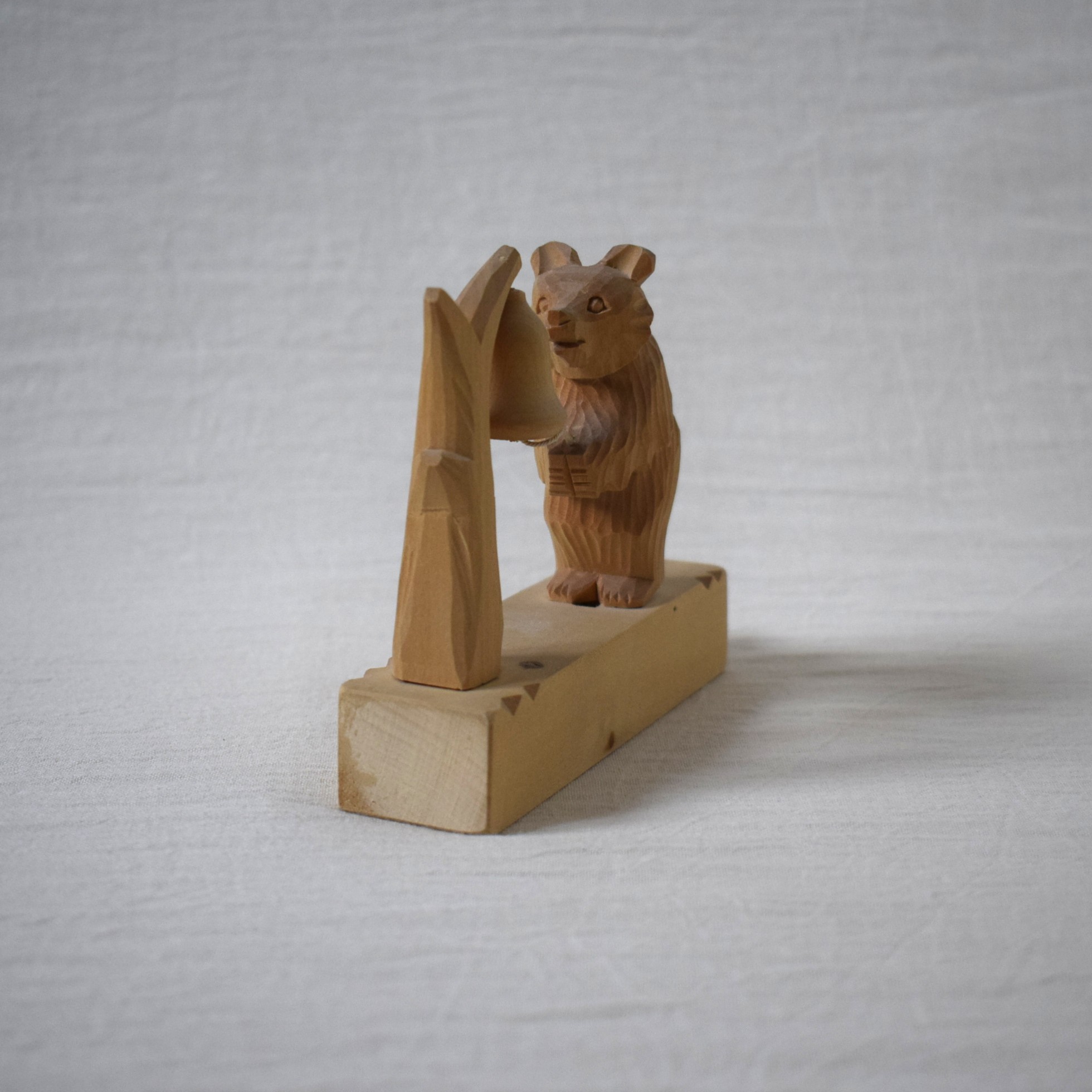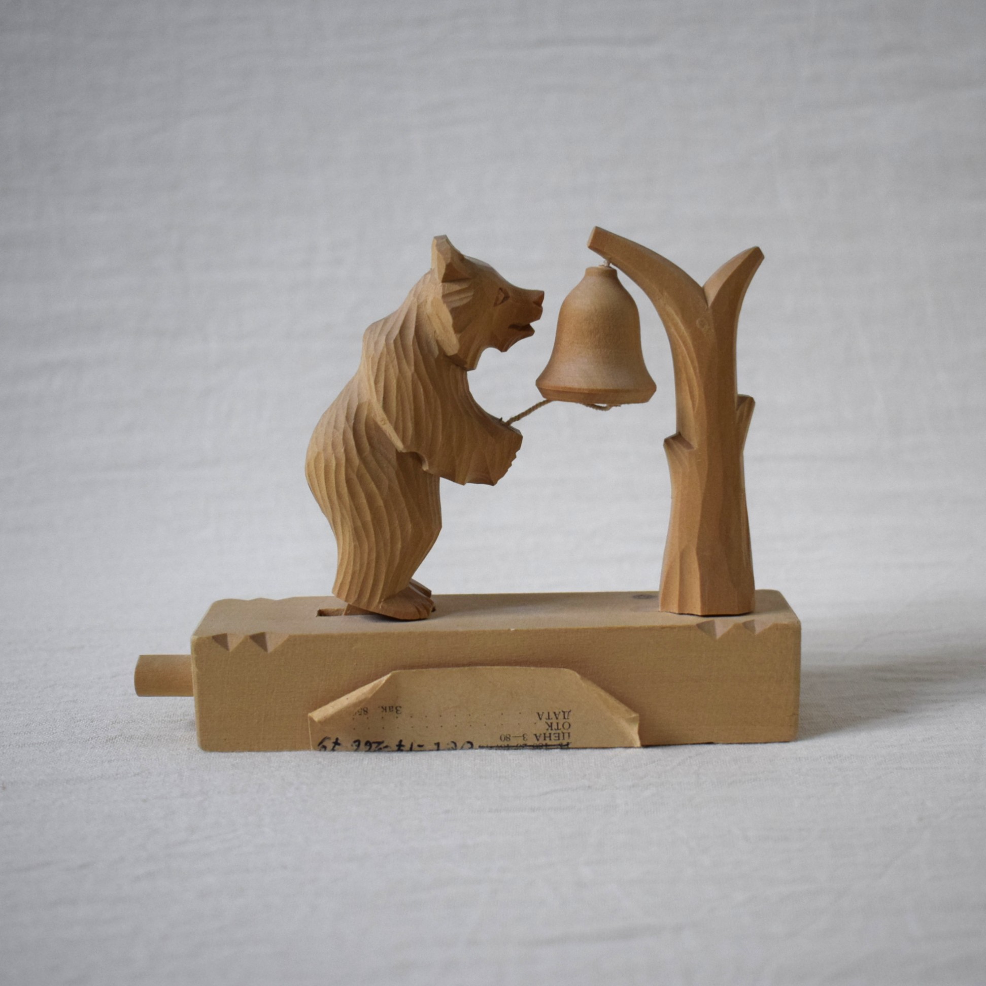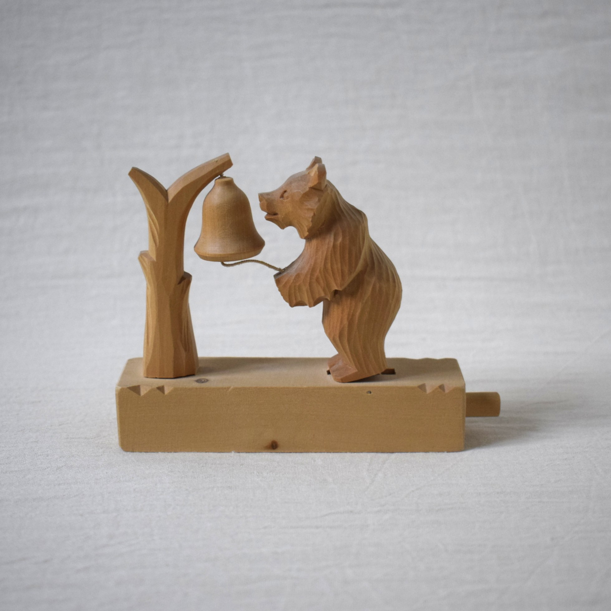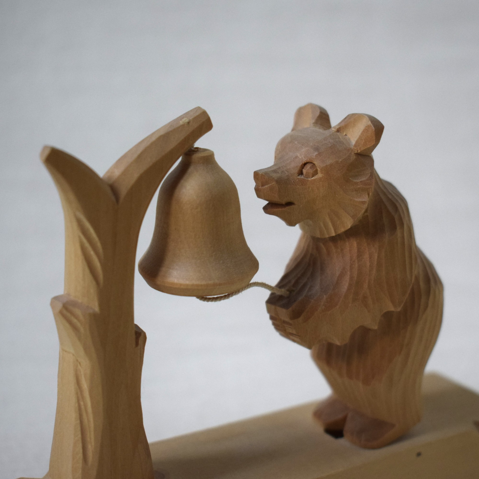 横の突起を押すことで熊がベルを鳴らすように動きます。