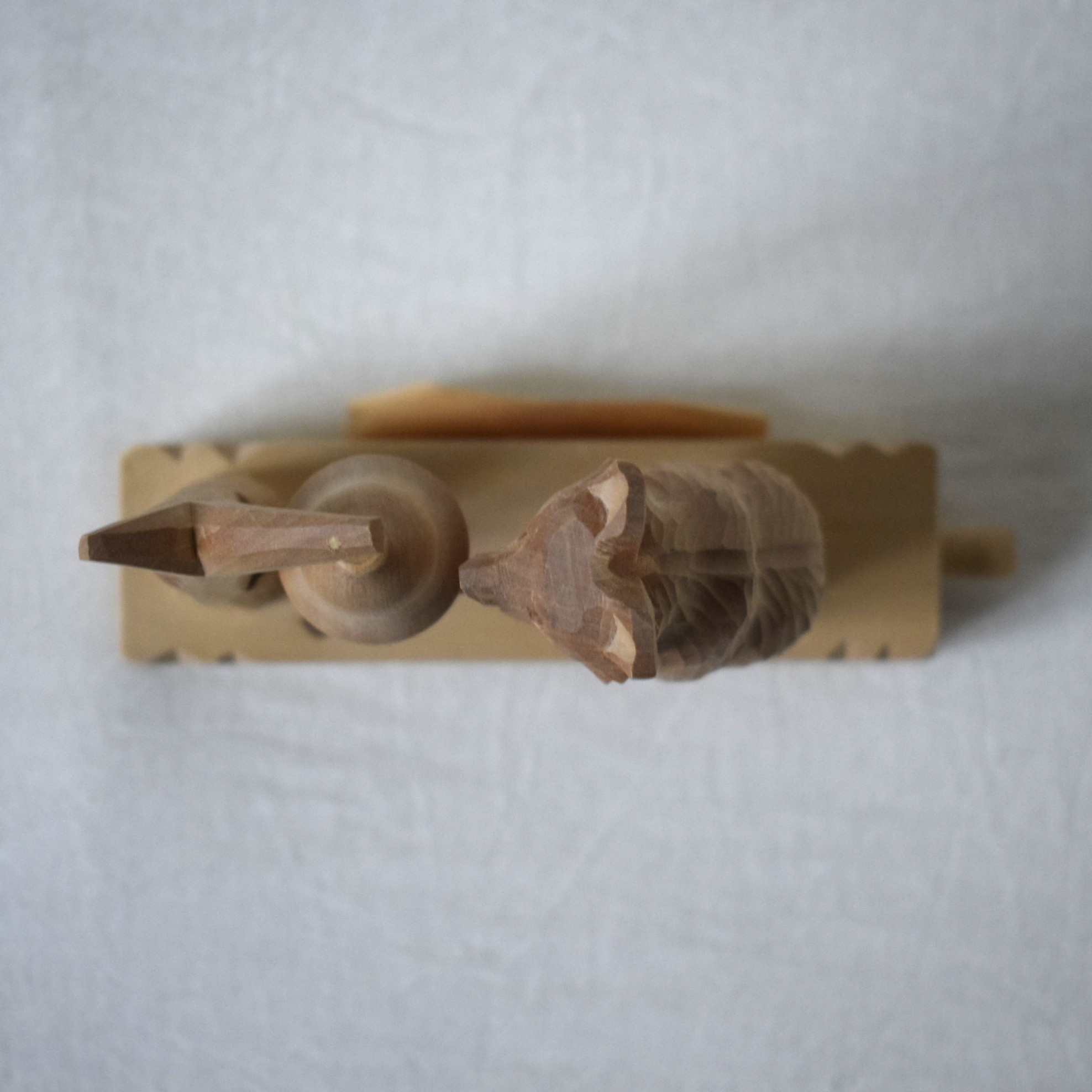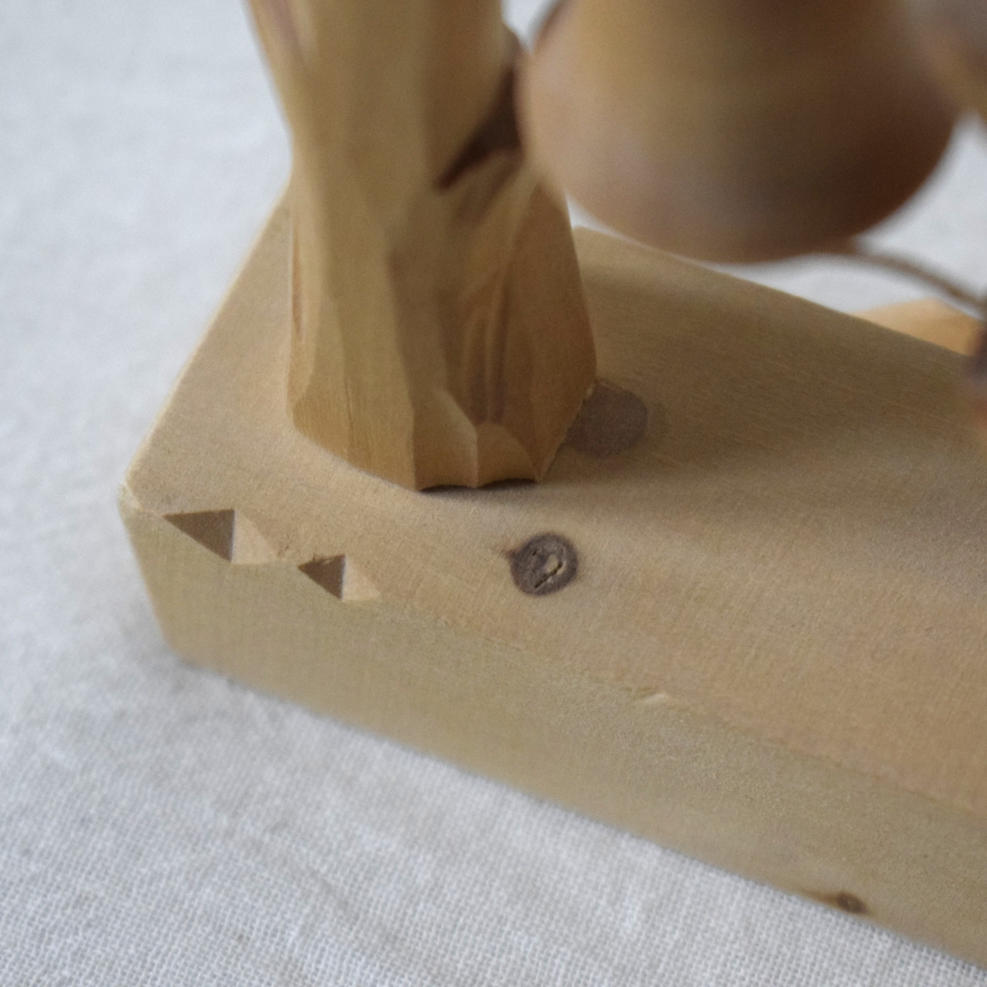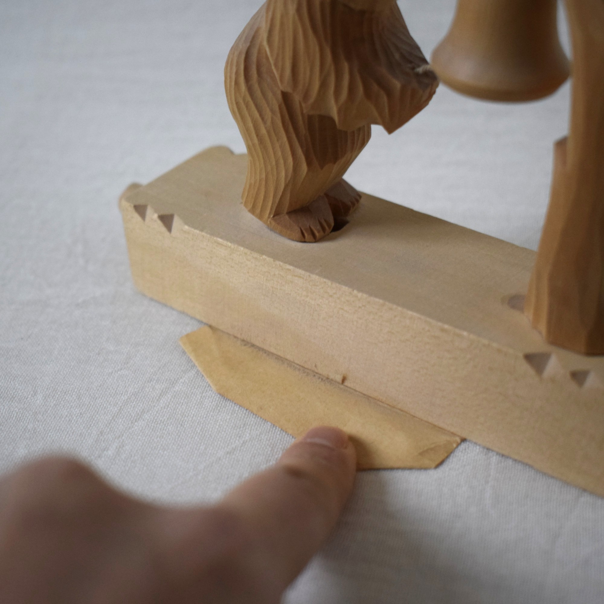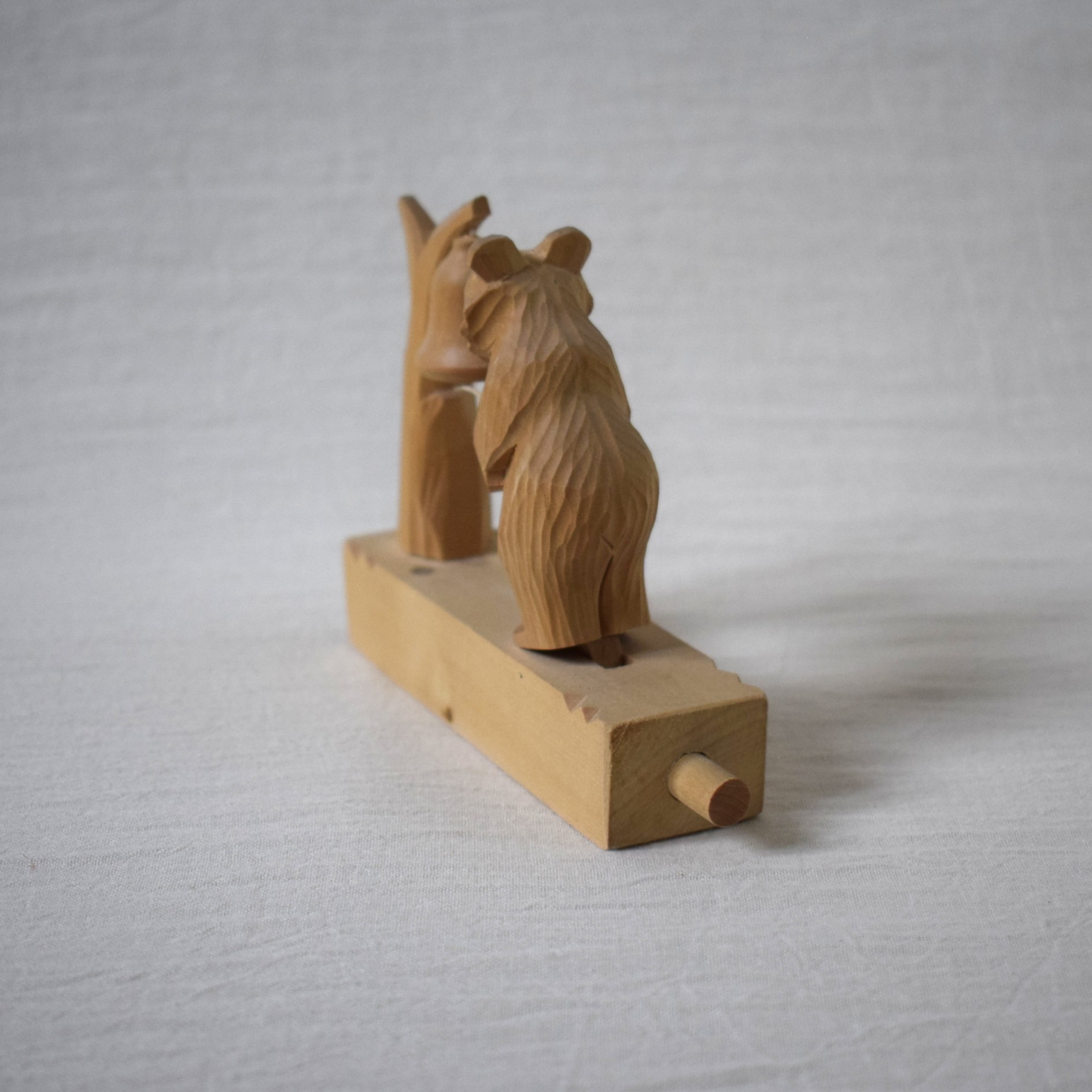 横の突起を押すことで熊がベルを鳴らすように動きます。