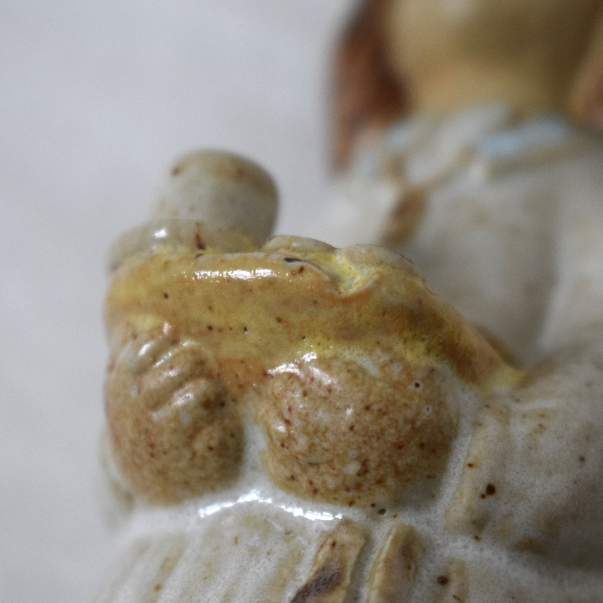 最後から二番目の画像を見ていただくとプレートの下に凹みがありますが、製造時にできたもので上からは釉薬がかかっています。