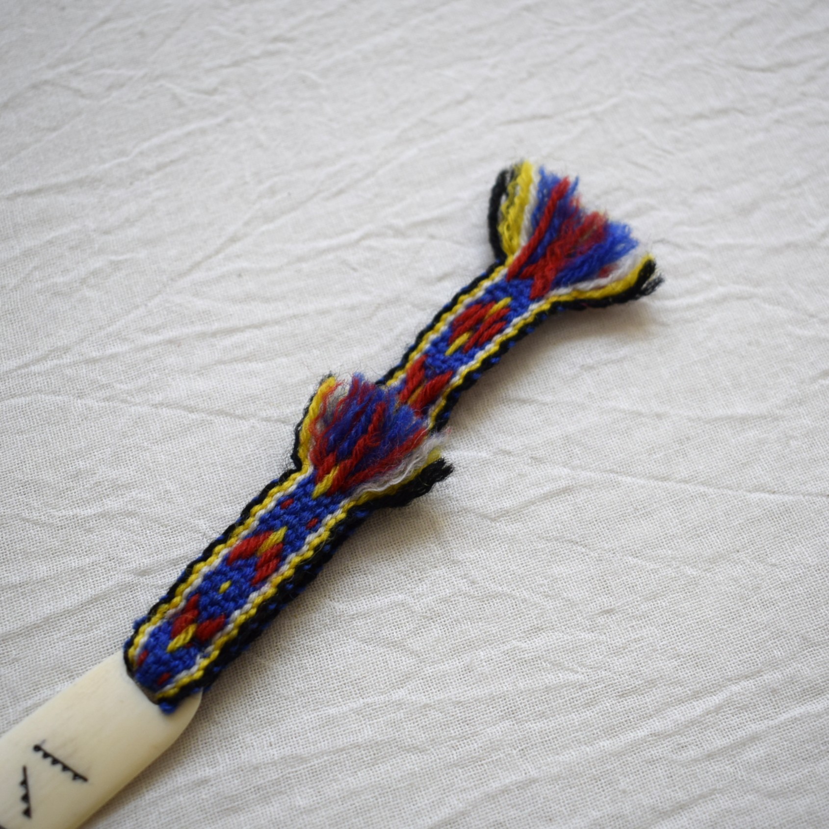 織り紐/バンド織りは、サーミの伝統的な配色で構成されています。