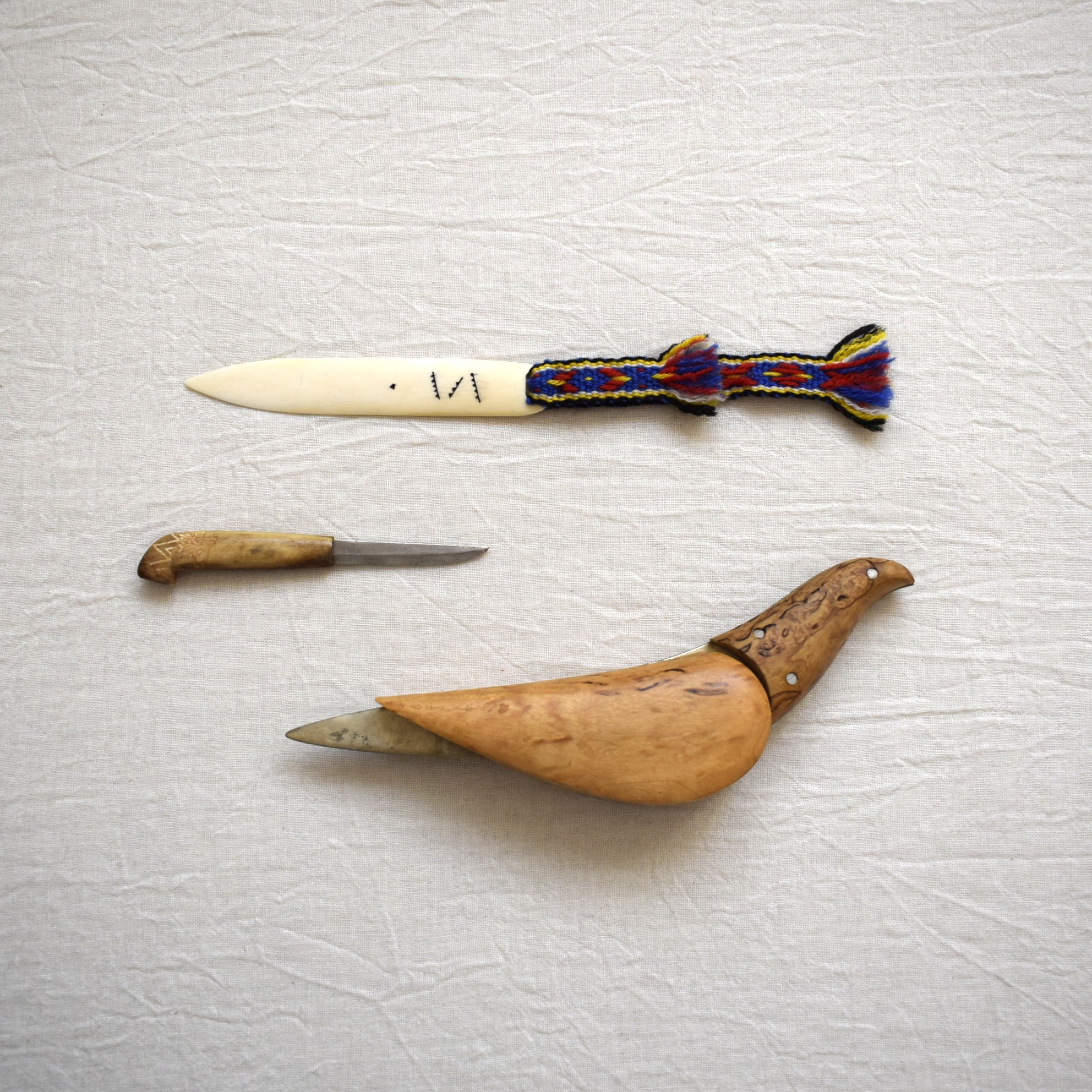 作り手のサーミ族は、木、動物の骨や皮など自然の中で手に入るものを使用し道具をつくり生活していました。