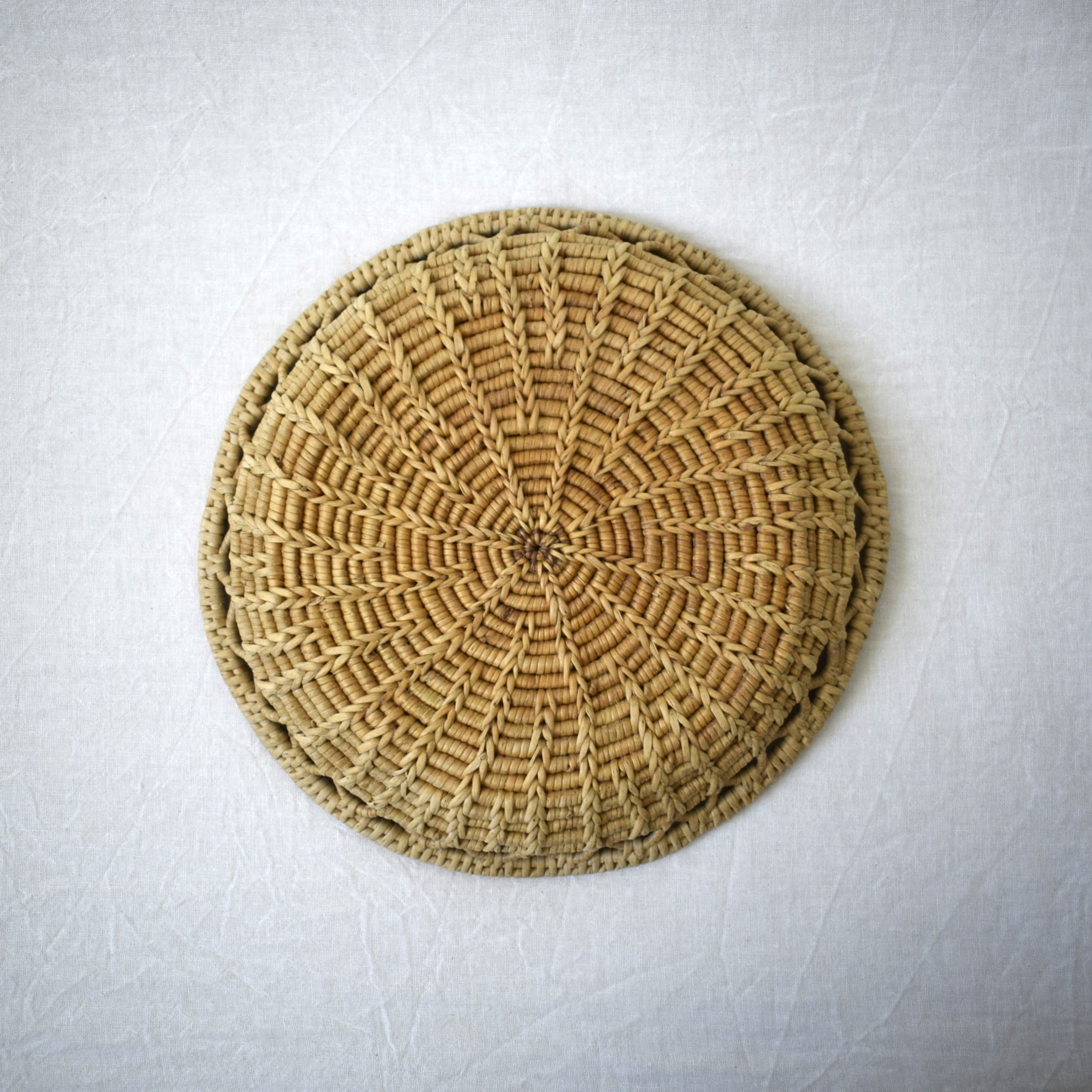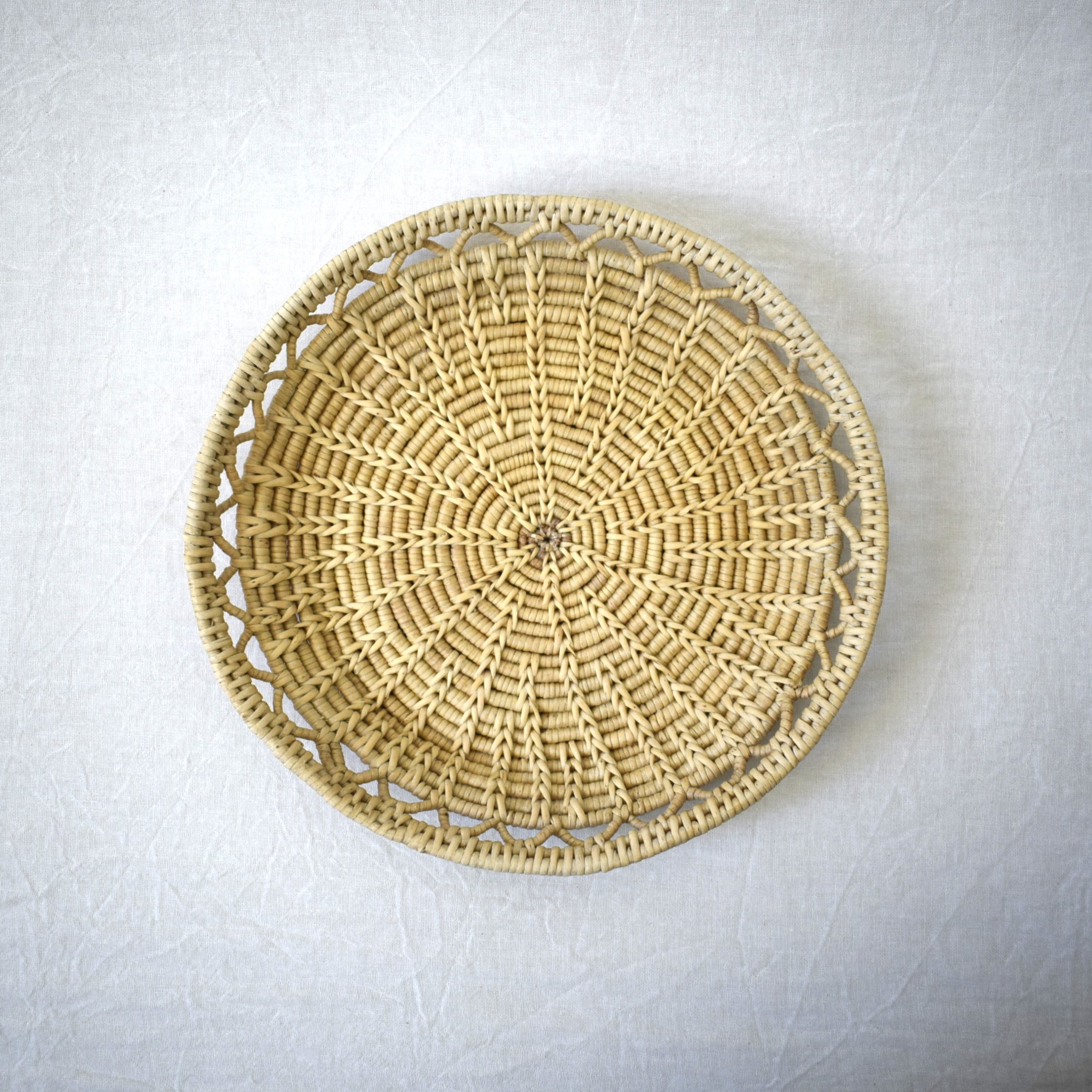 小麦粉系、パンなどを置く籠として使われていた場合、このような特徴があります。