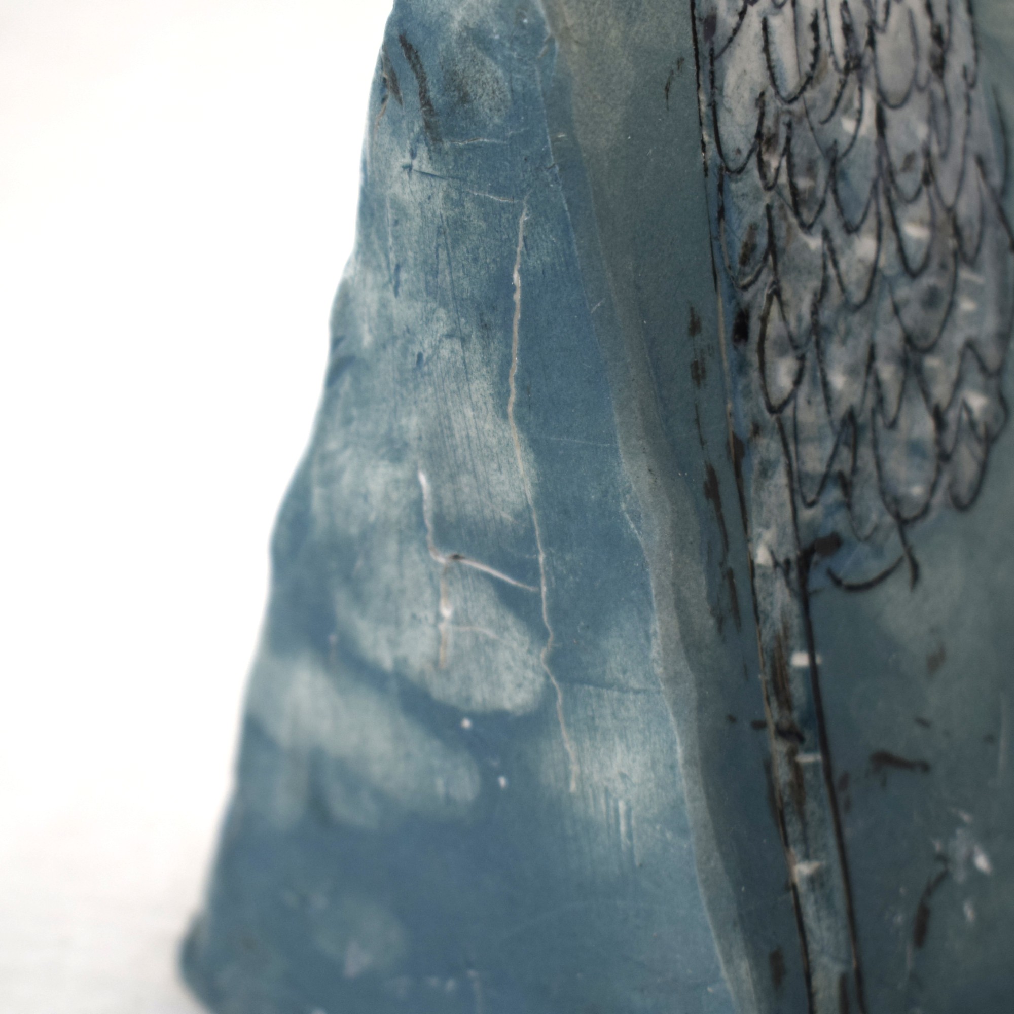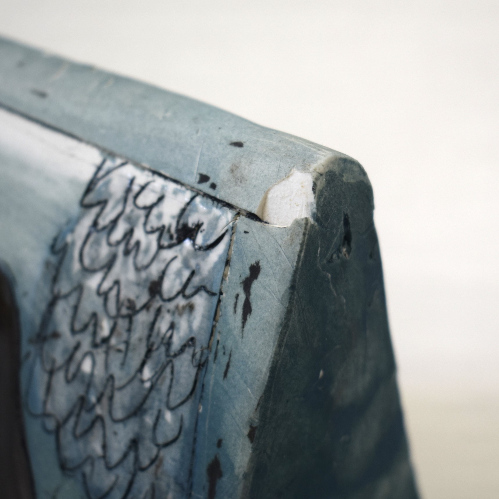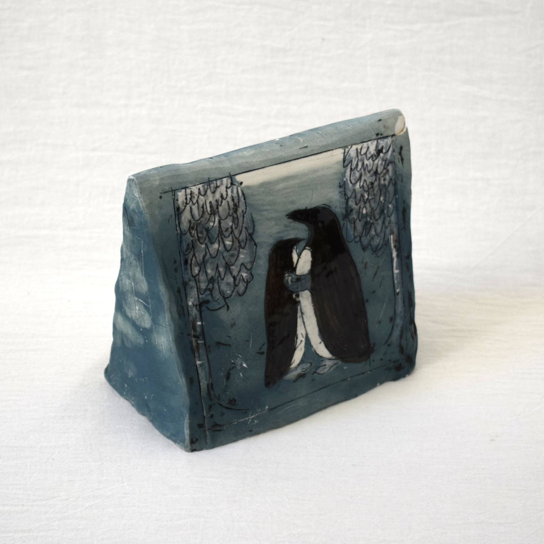 ヒビは製作過程で出来たものですが、ペンギンの面、右上の欠けは後から出来たものです。