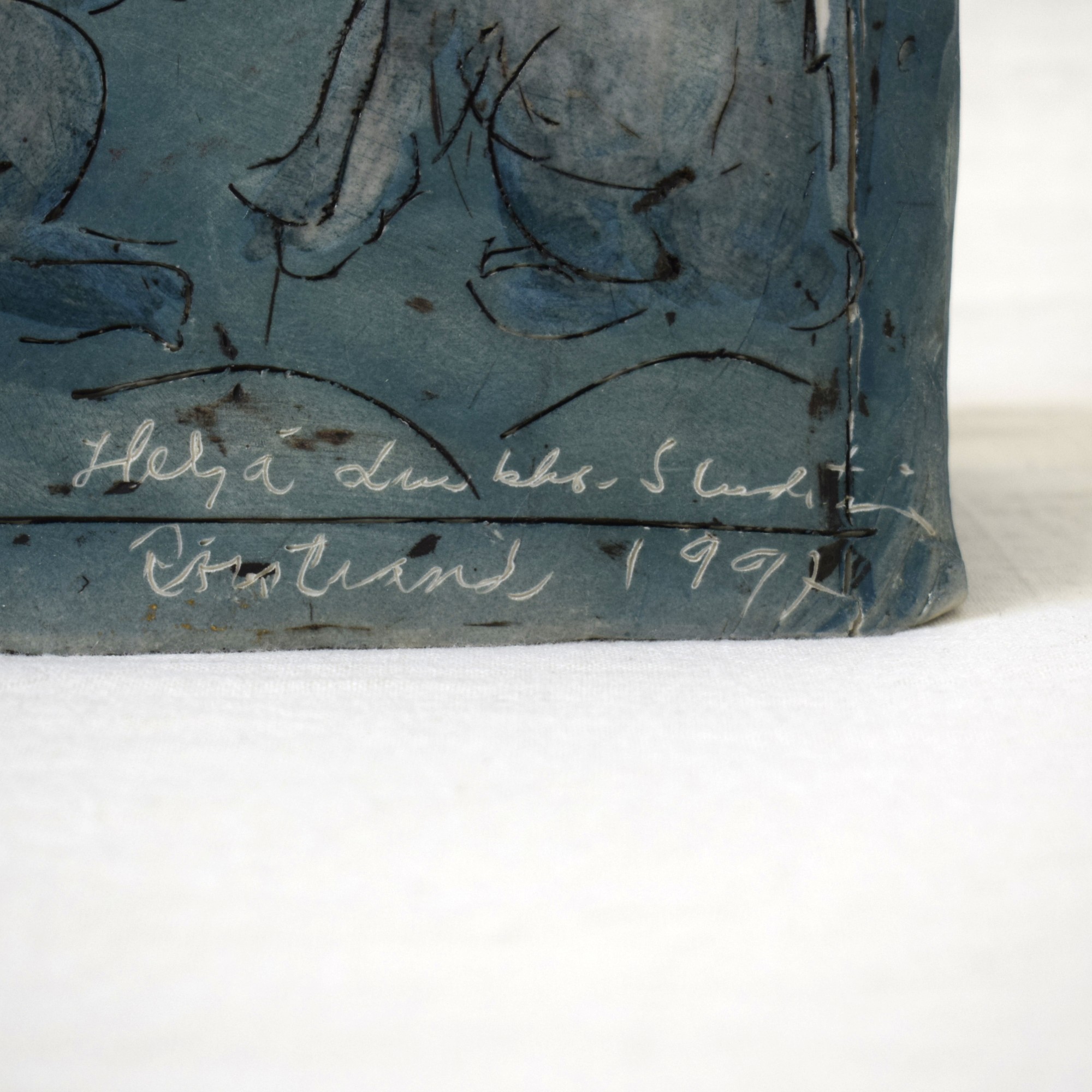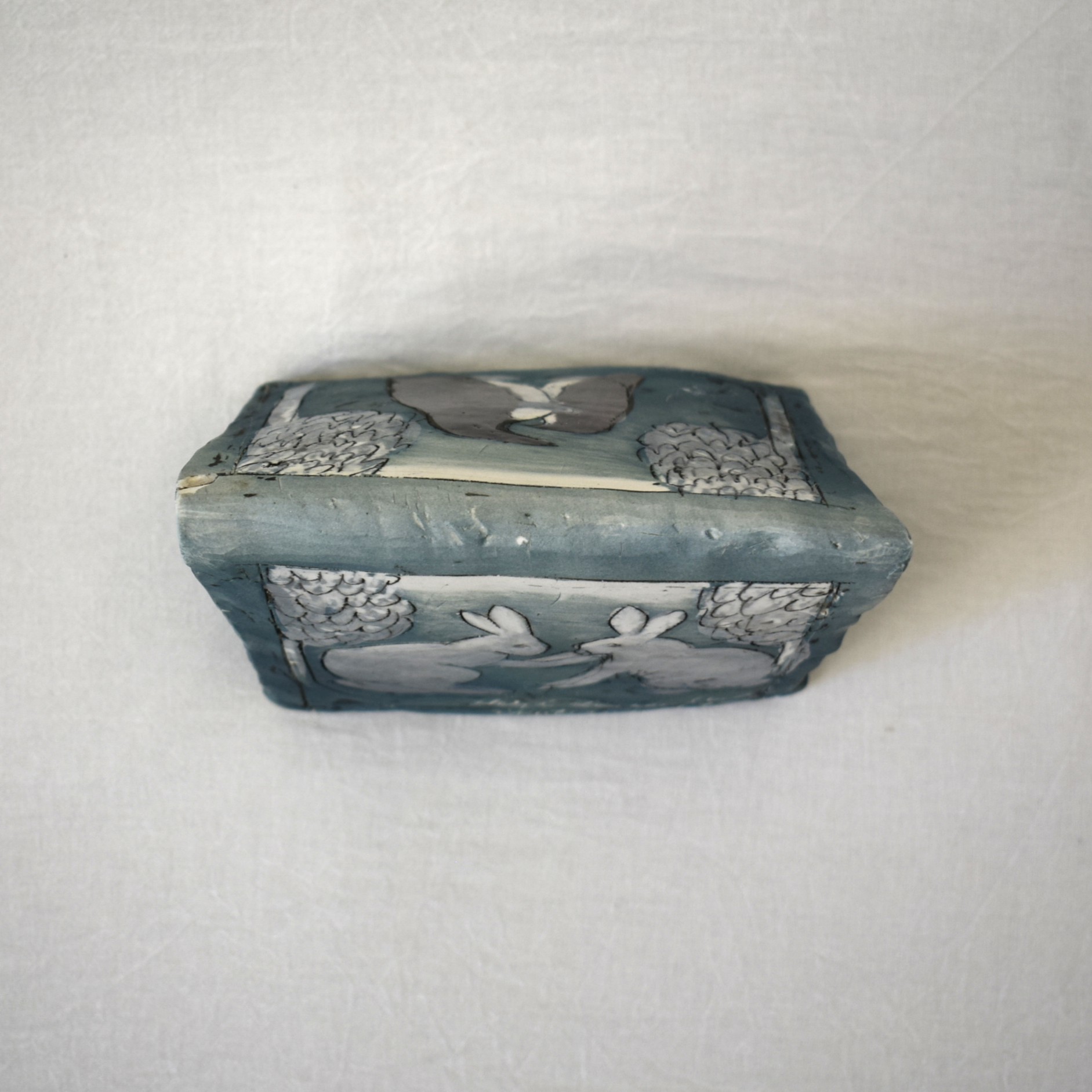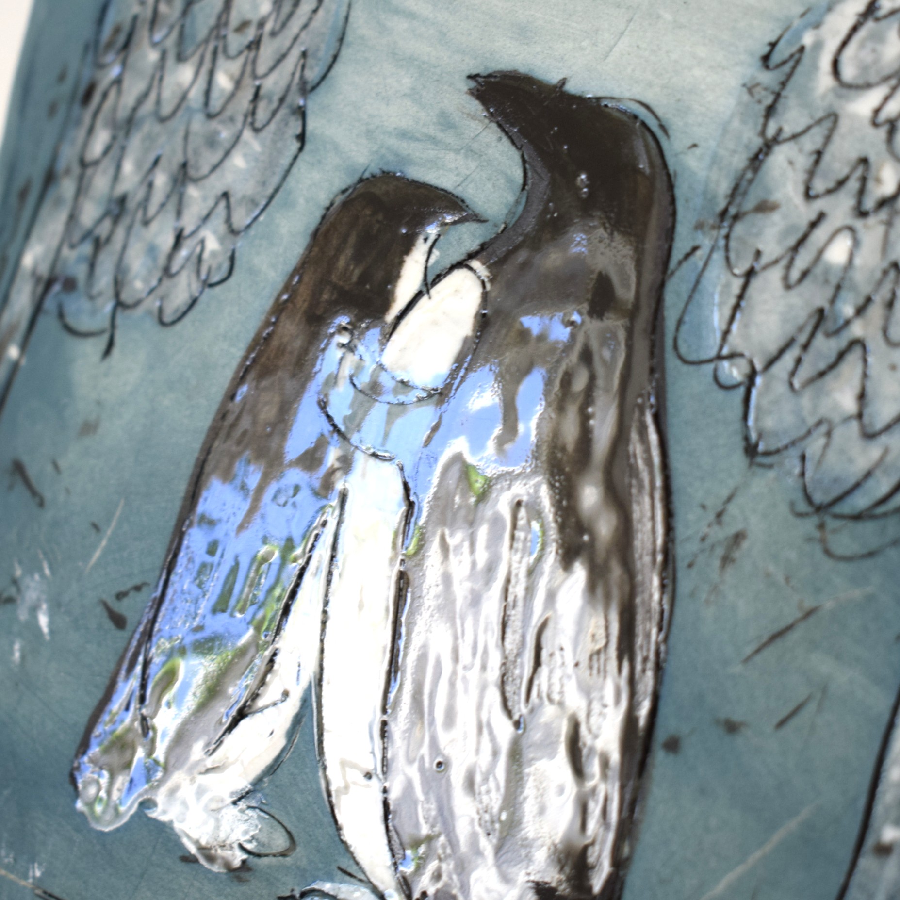 ヒビは製作過程で出来たものですが、ペンギンの面、右上の欠けは後から出来たものです。
