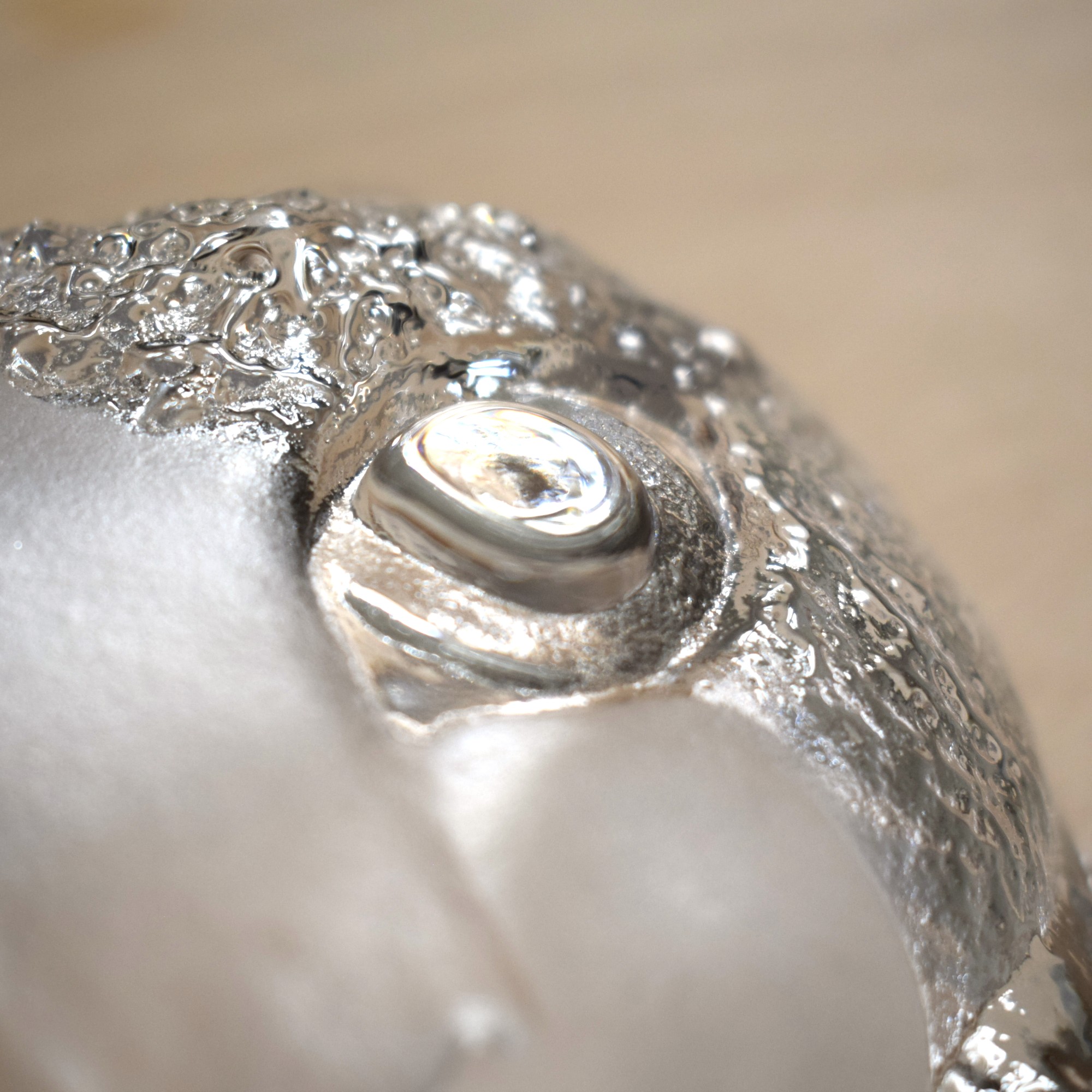磨りガラス(フロスト加工)、凸凹した箇所、そして滑らかな面を上手く組み合わせたデザインとなっております。