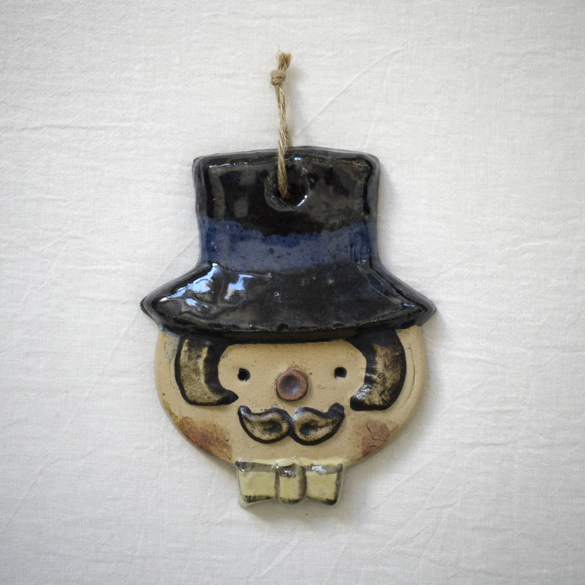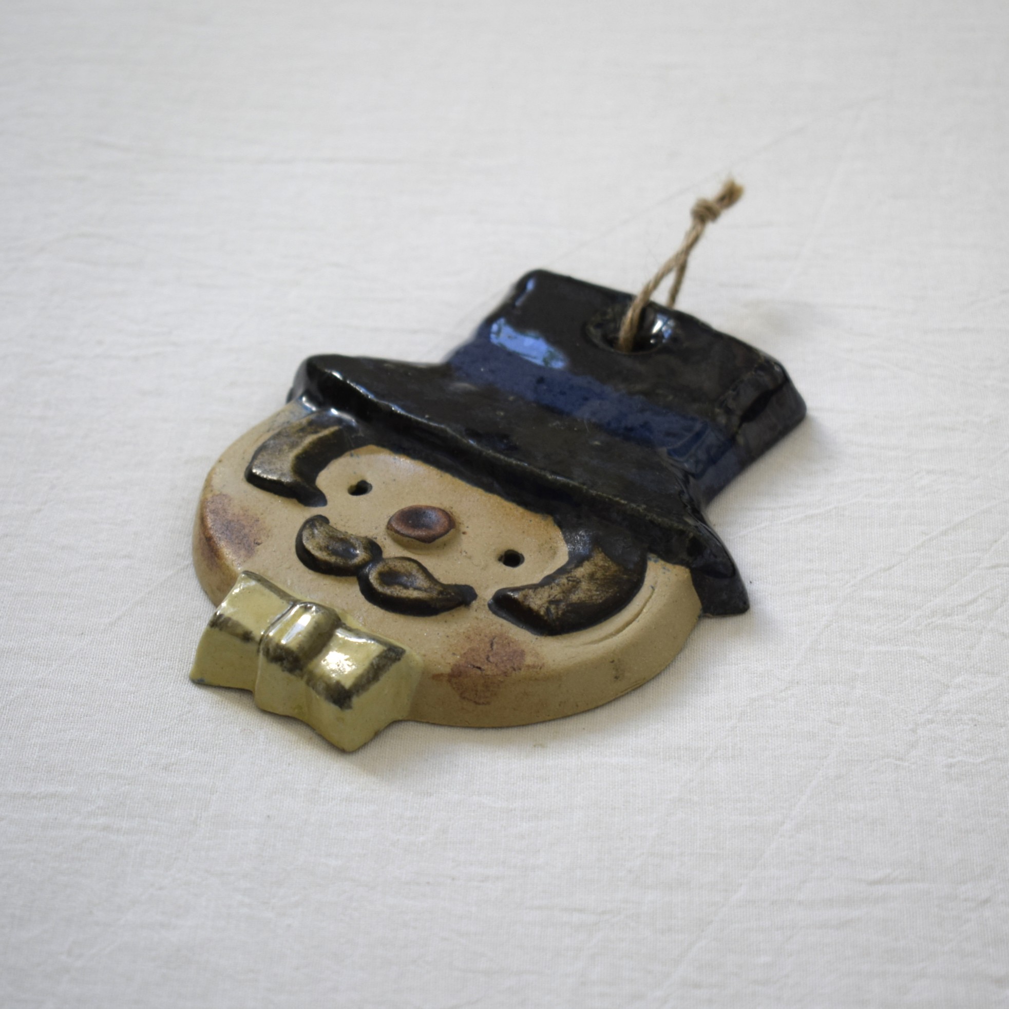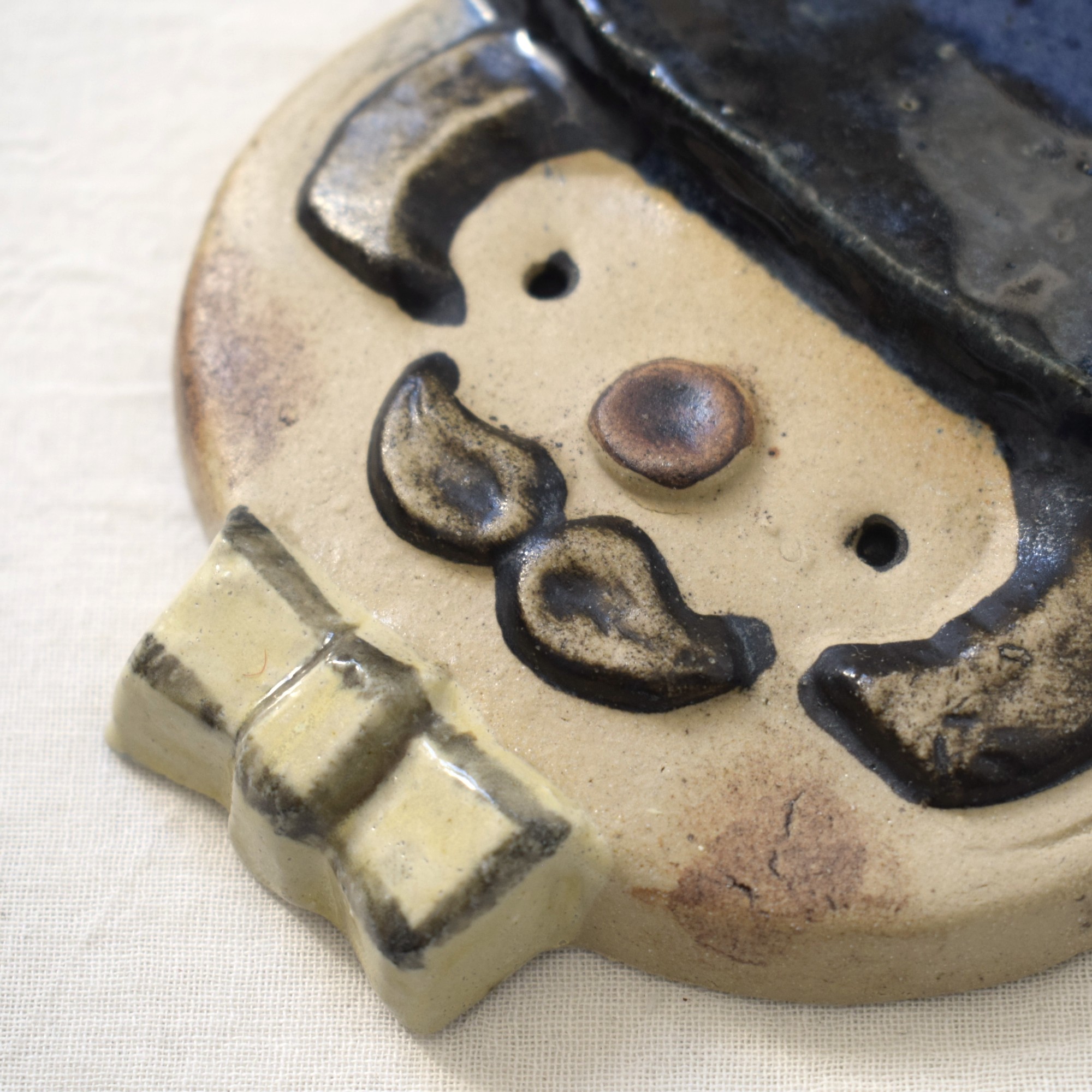 男性の帽子に製造時に出来た釉薬ムラ、気泡がございます。