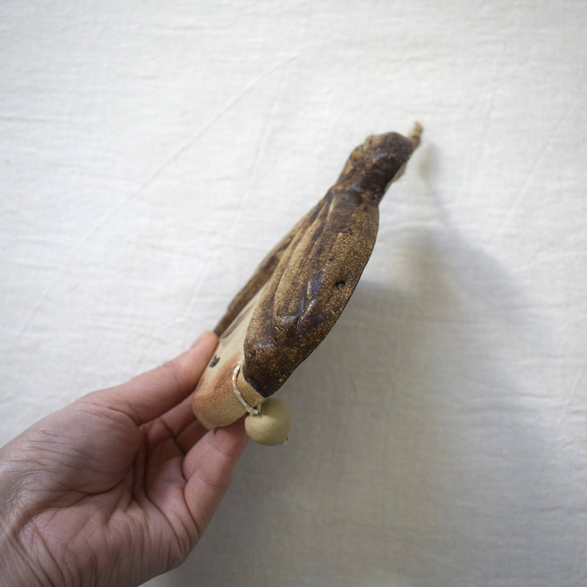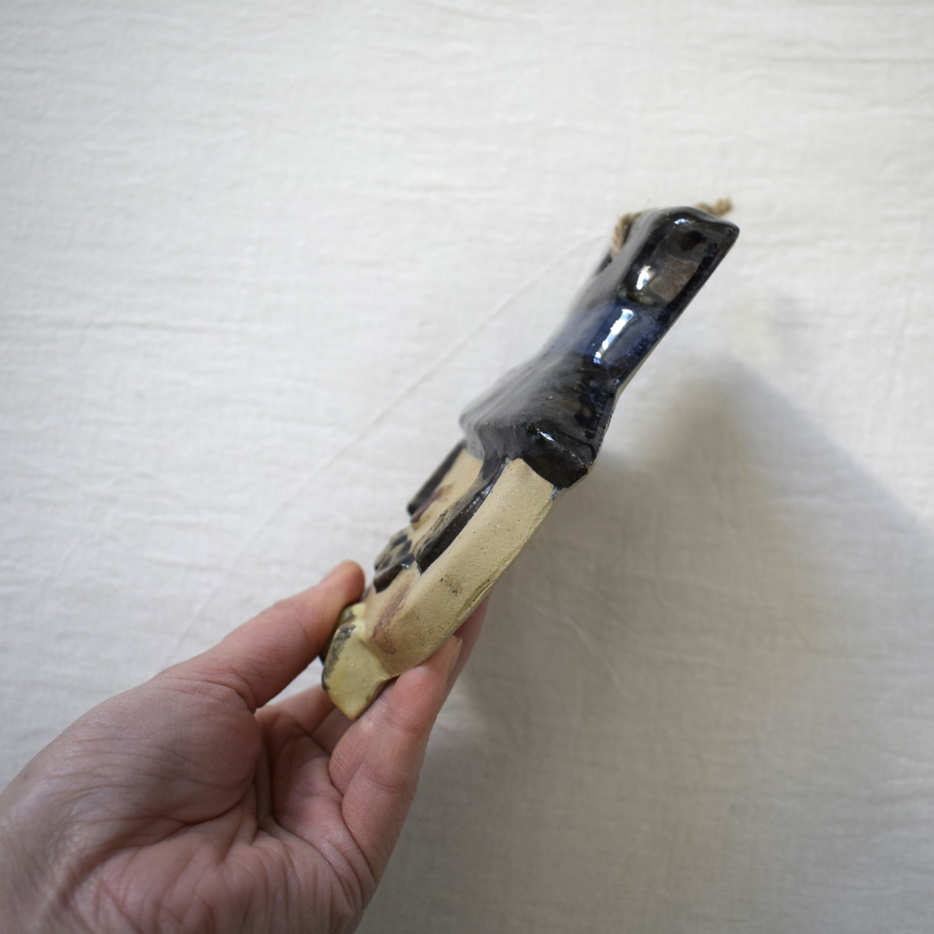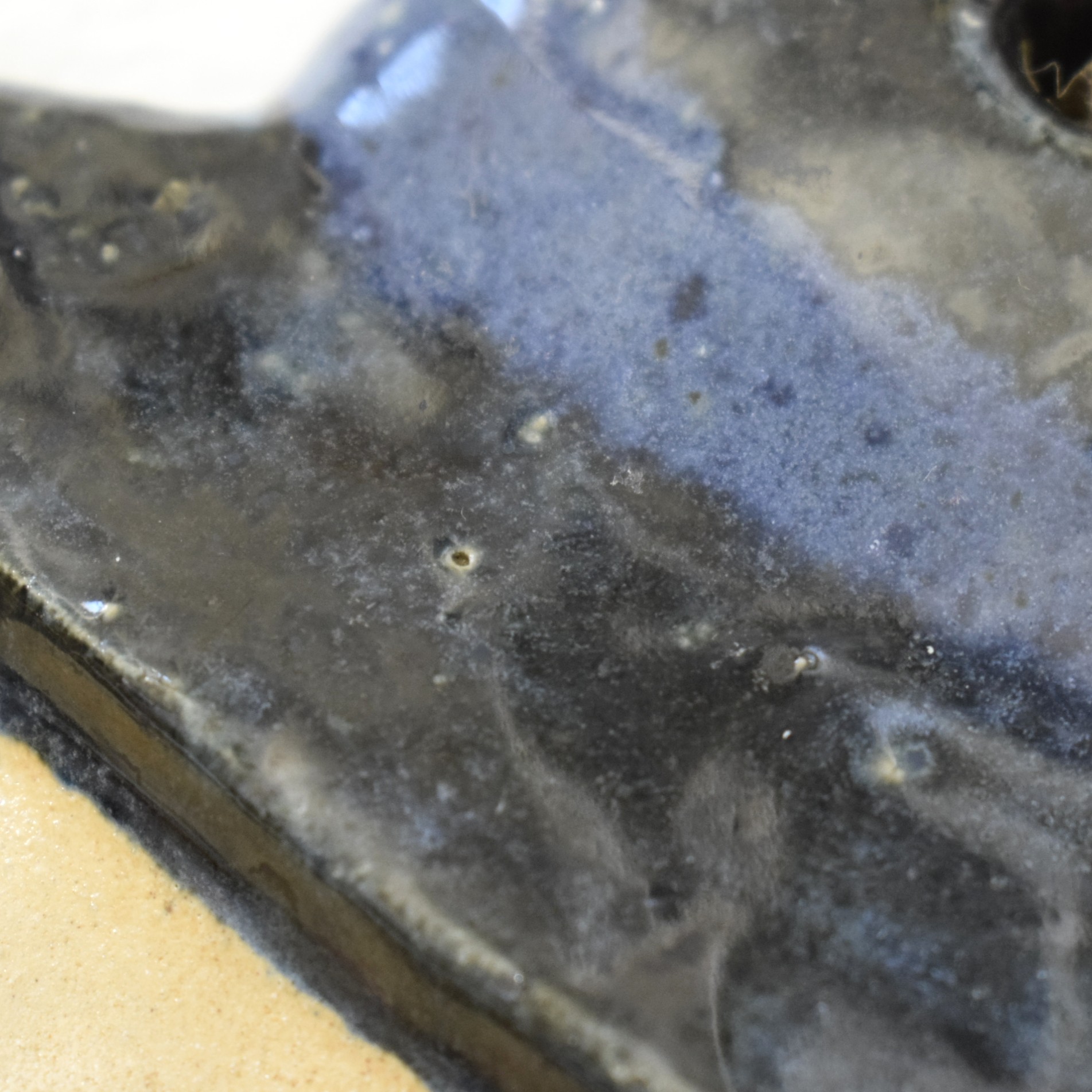 男性の帽子に製造時に出来た釉薬ムラ、気泡がございます。