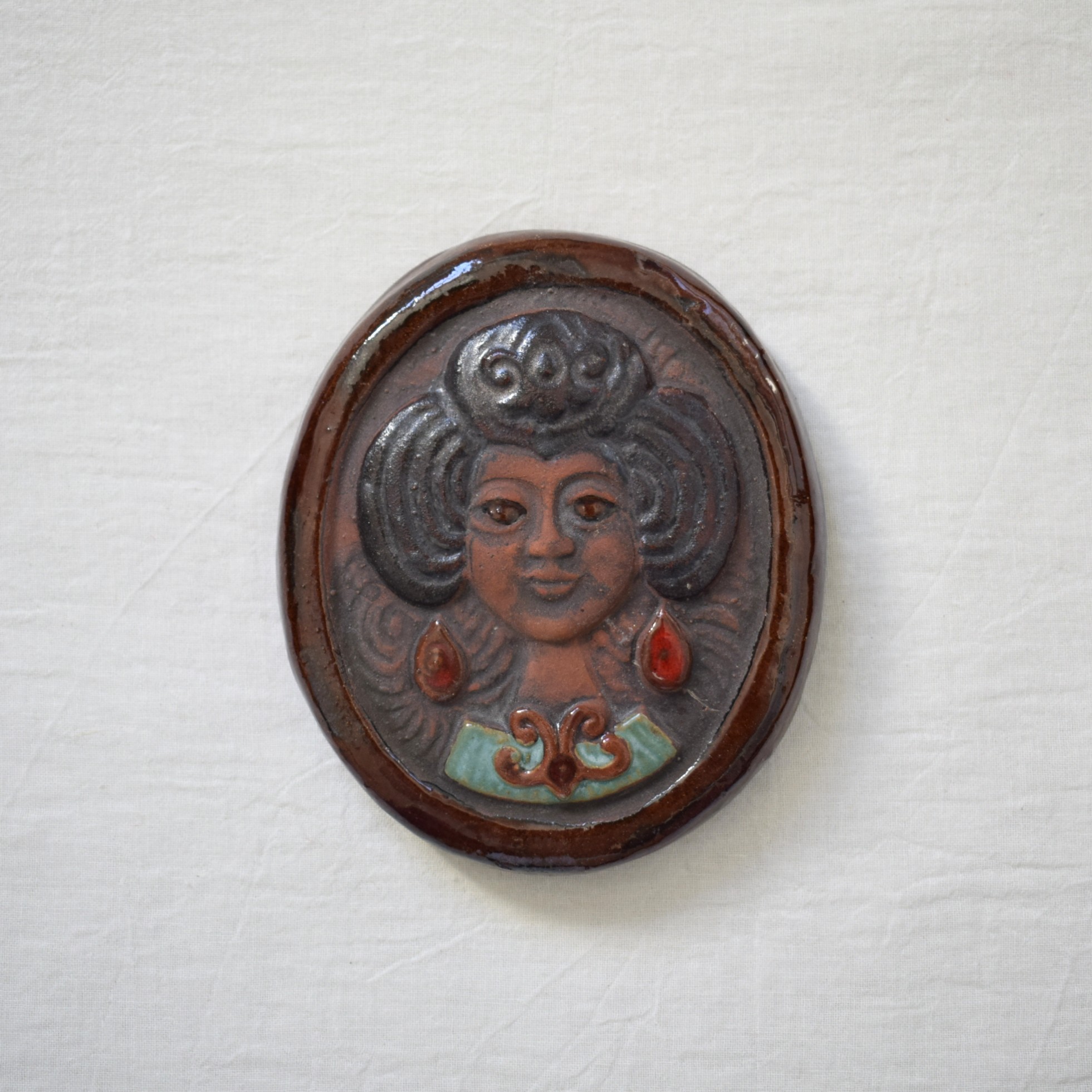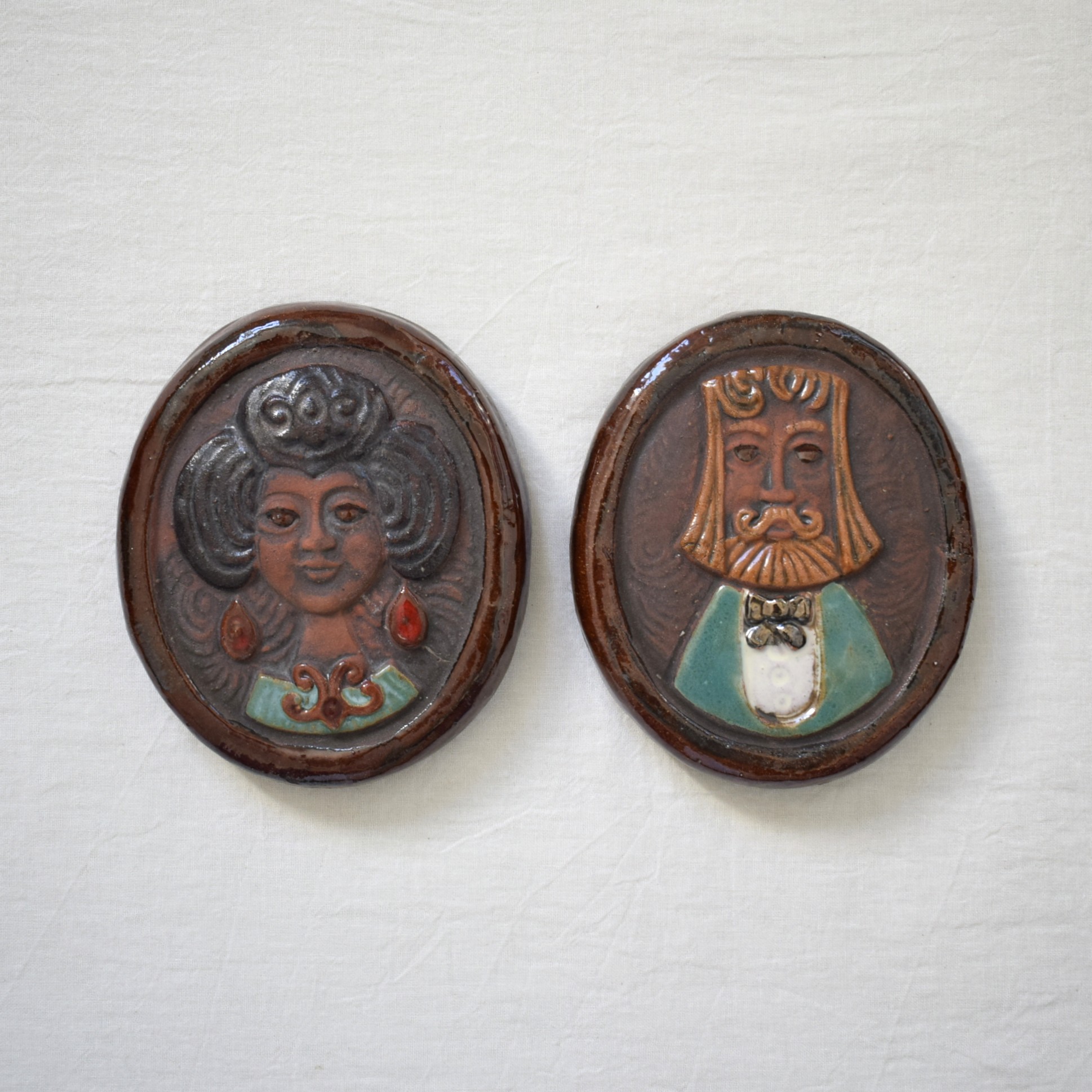 今回ご紹介する作品は、男性と女性が描かれた重厚感あふれる陶板です。
