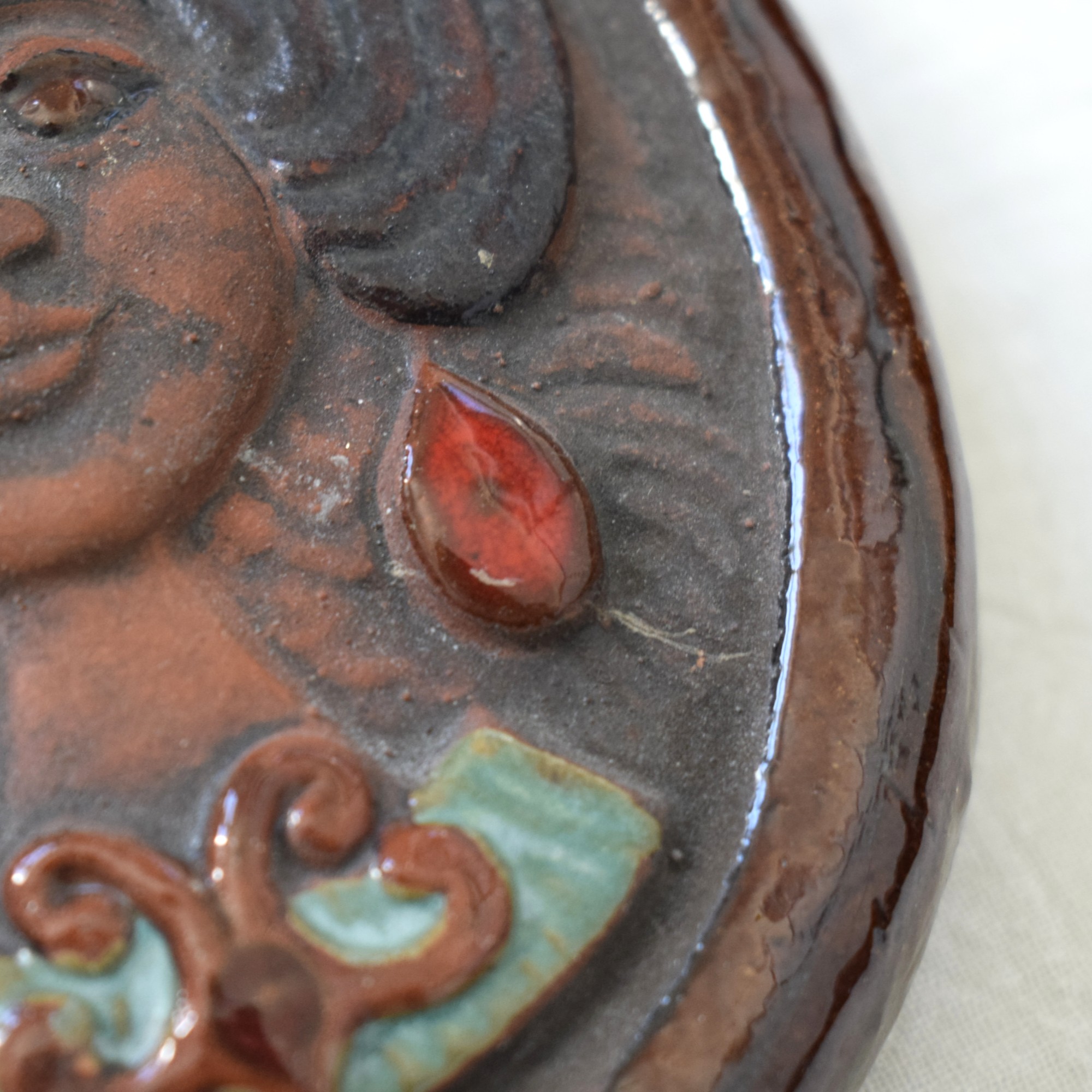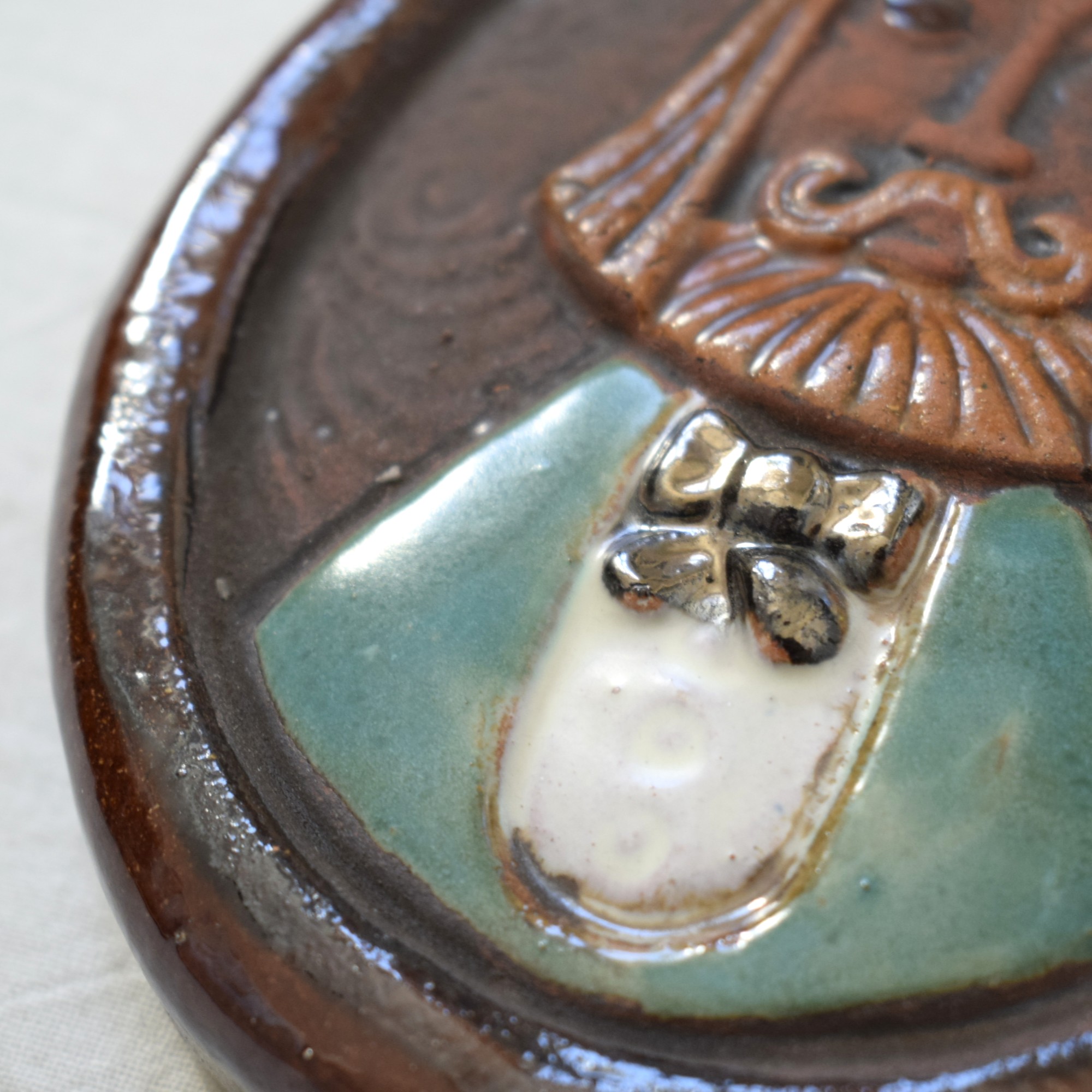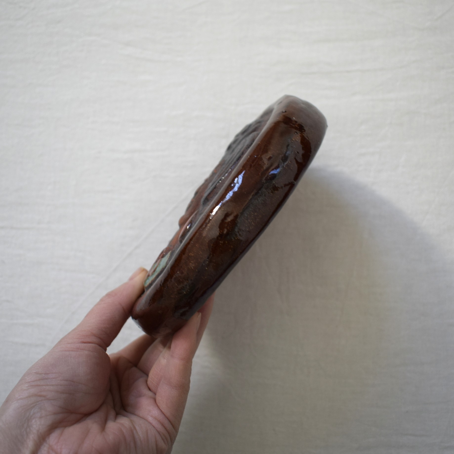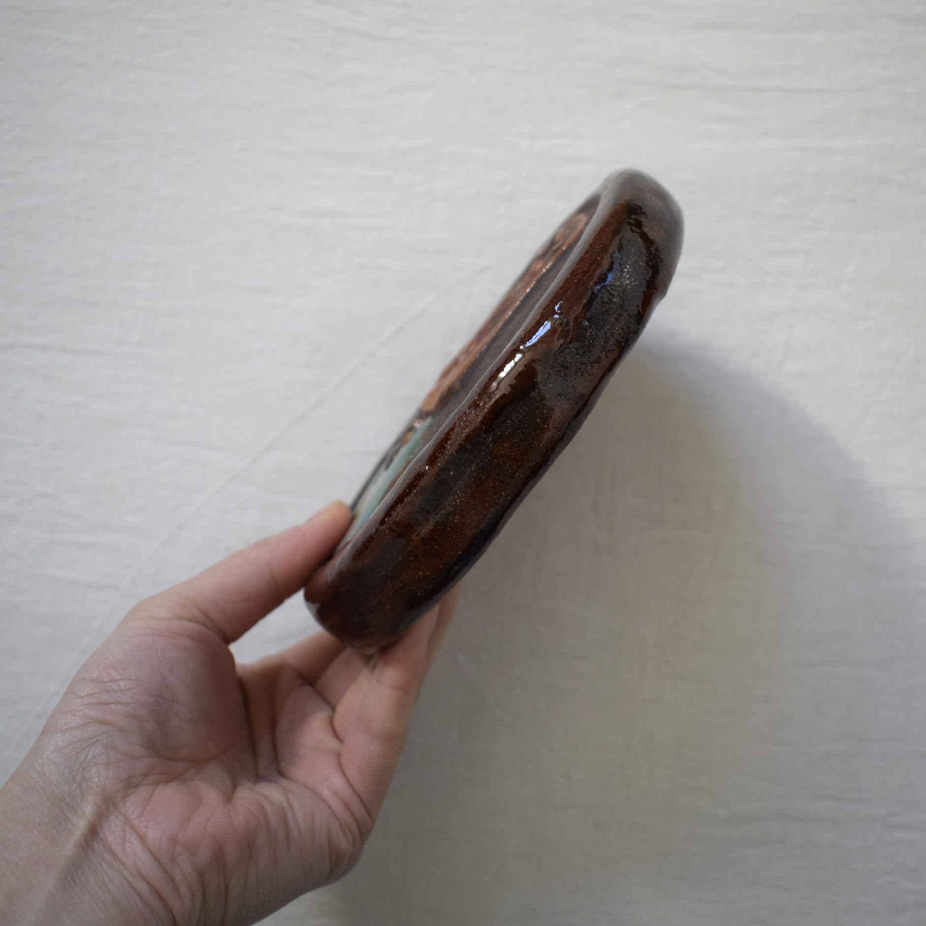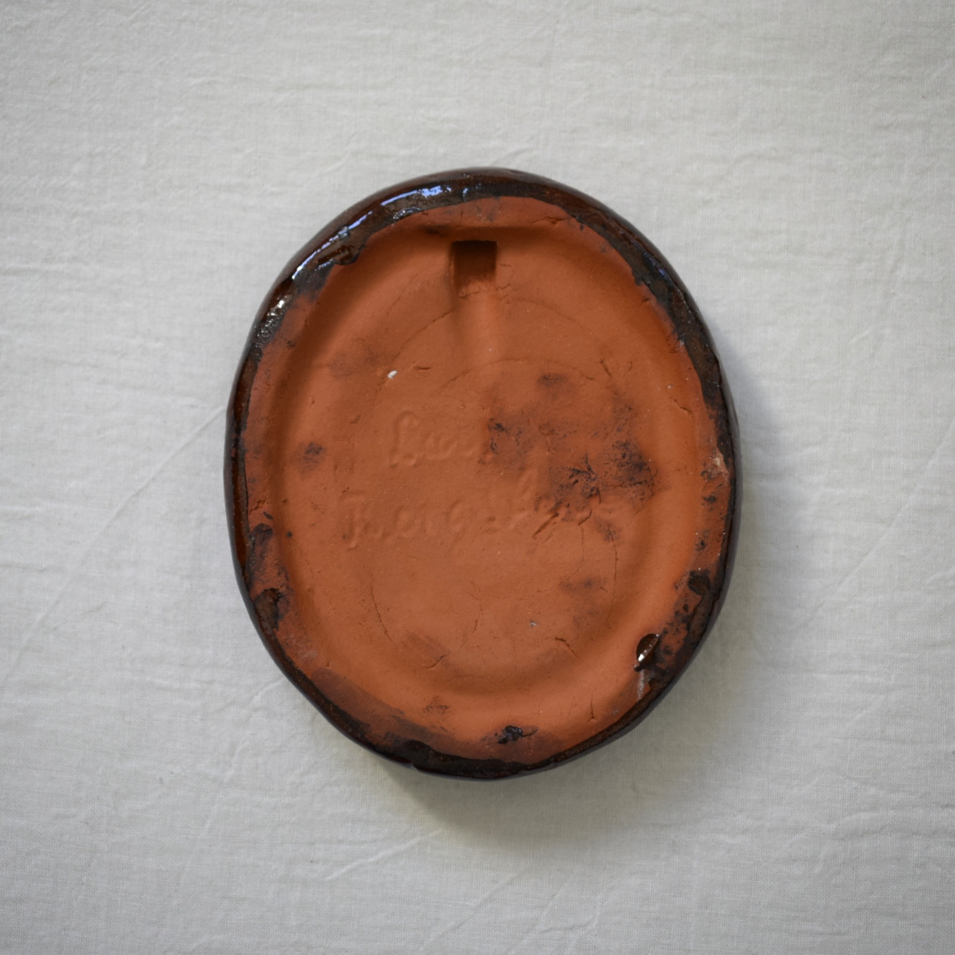 陶板の裏側にはご本人の手彫りサインが入っています。