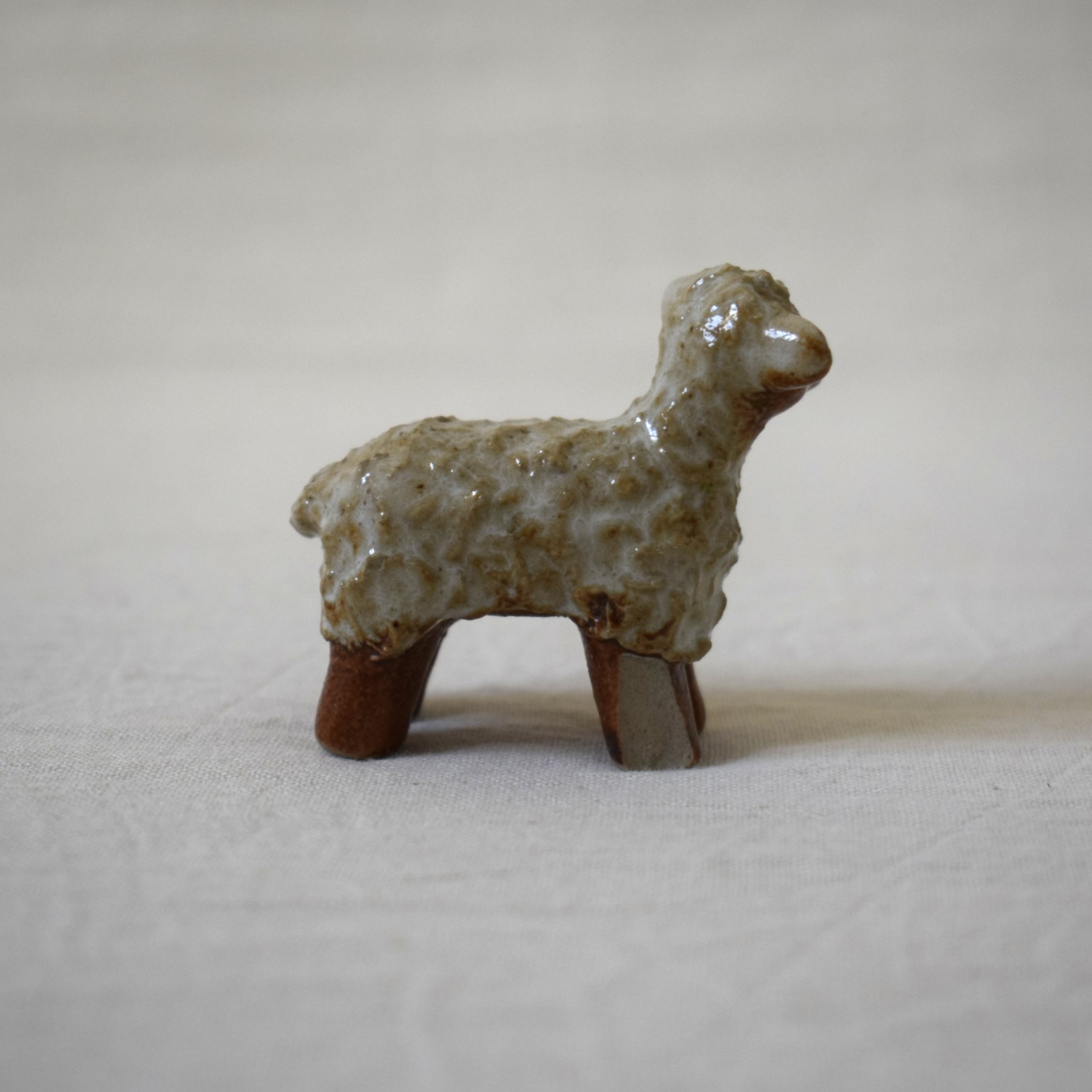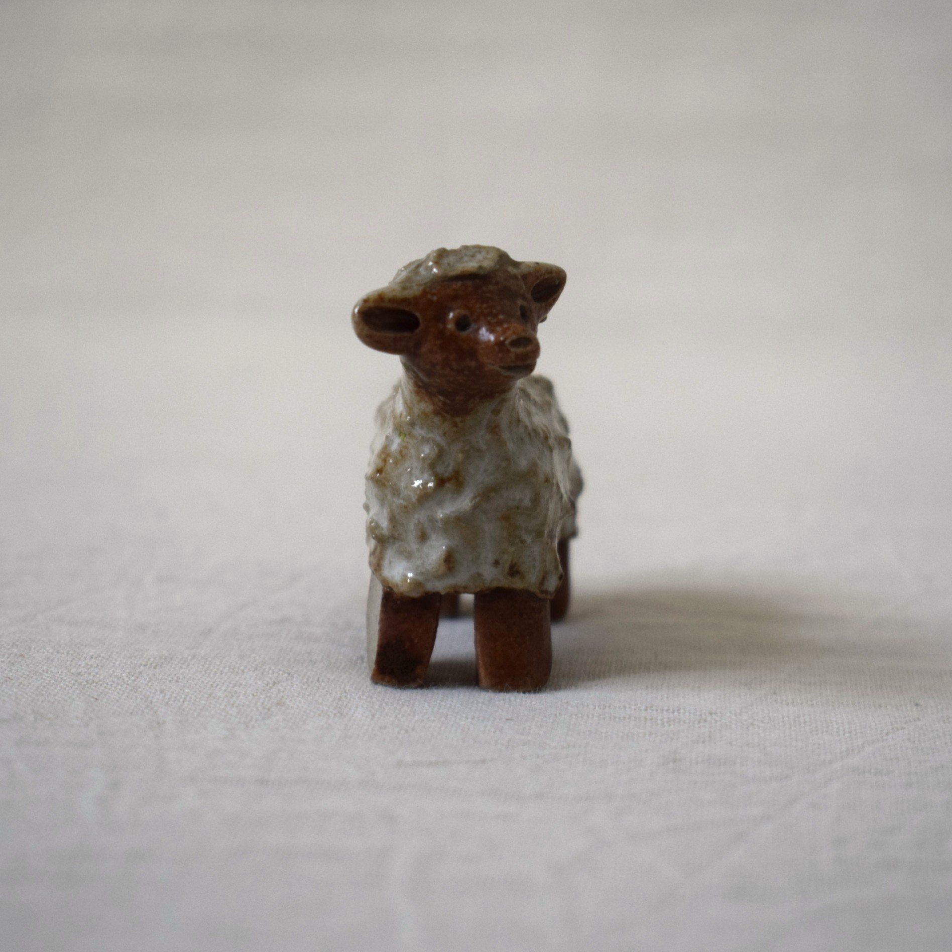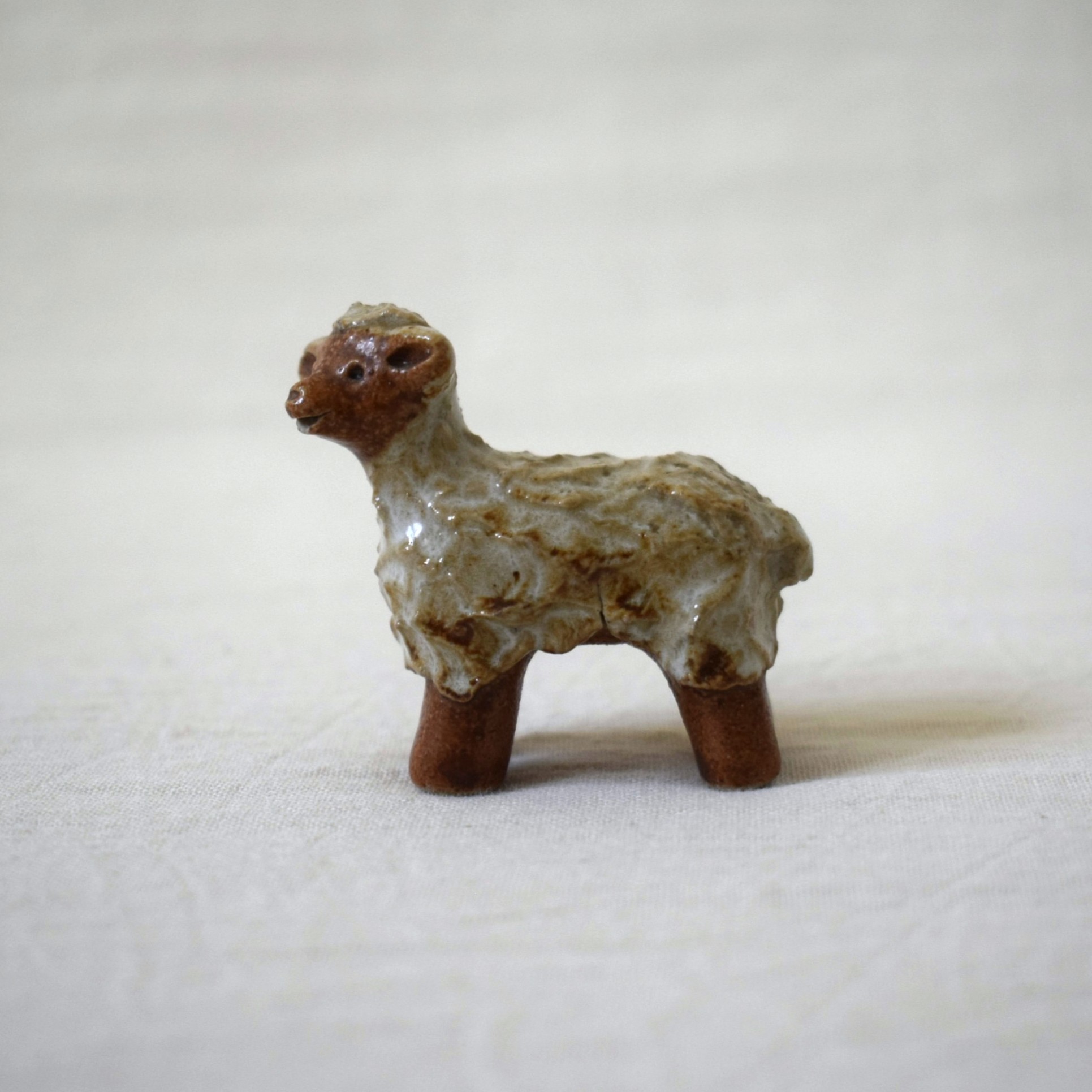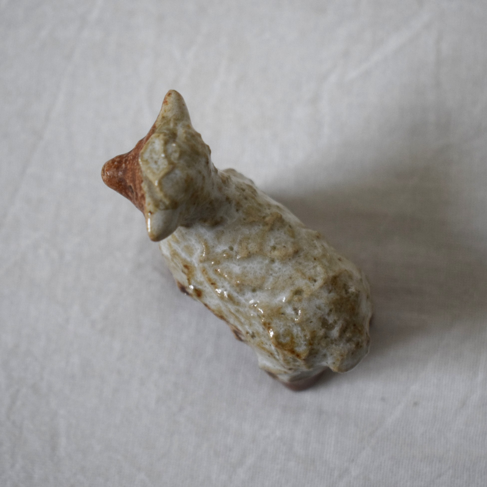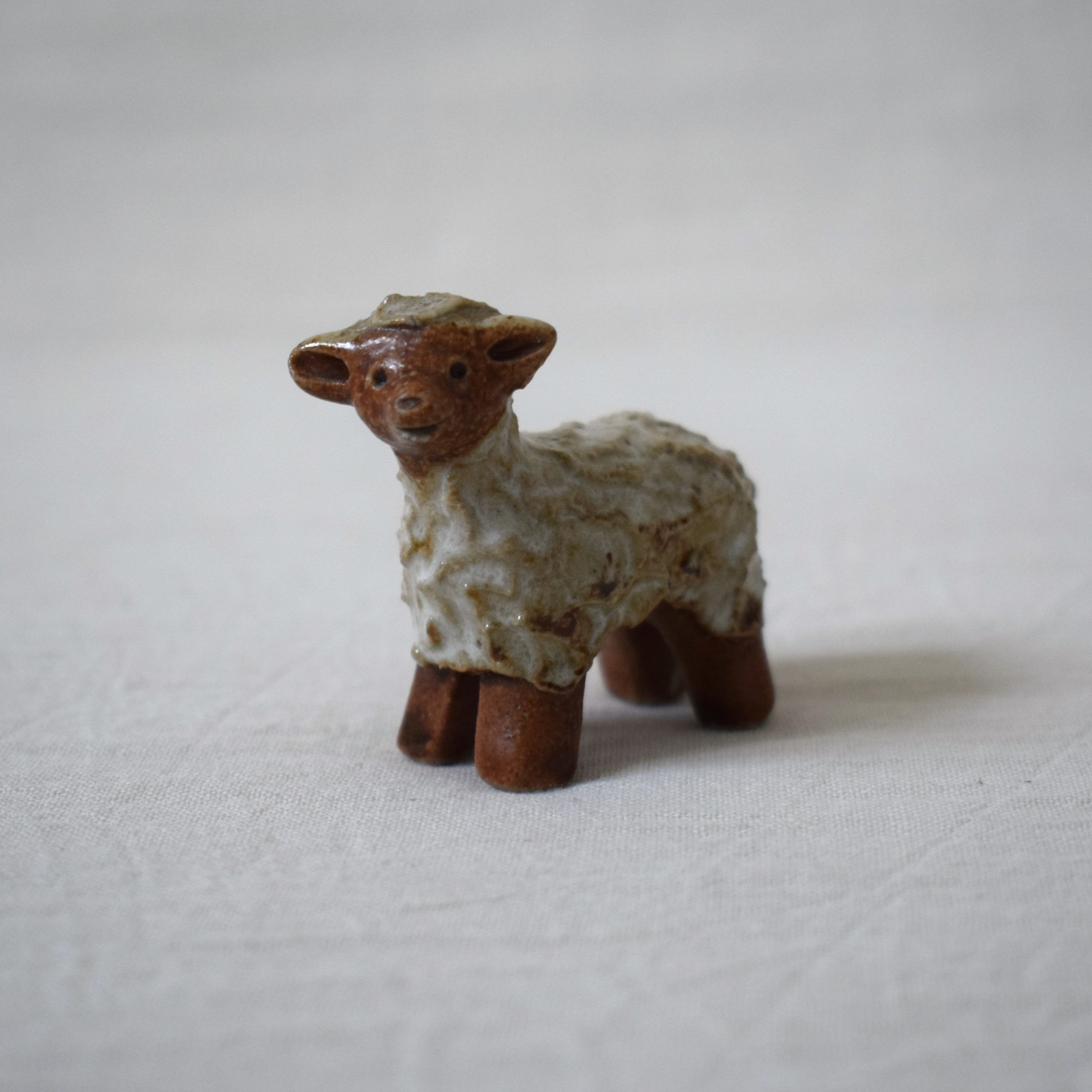 今回ご紹介するのは茶色と白い釉薬の組み合わせが可愛いらしい、愛嬌のある羊です。