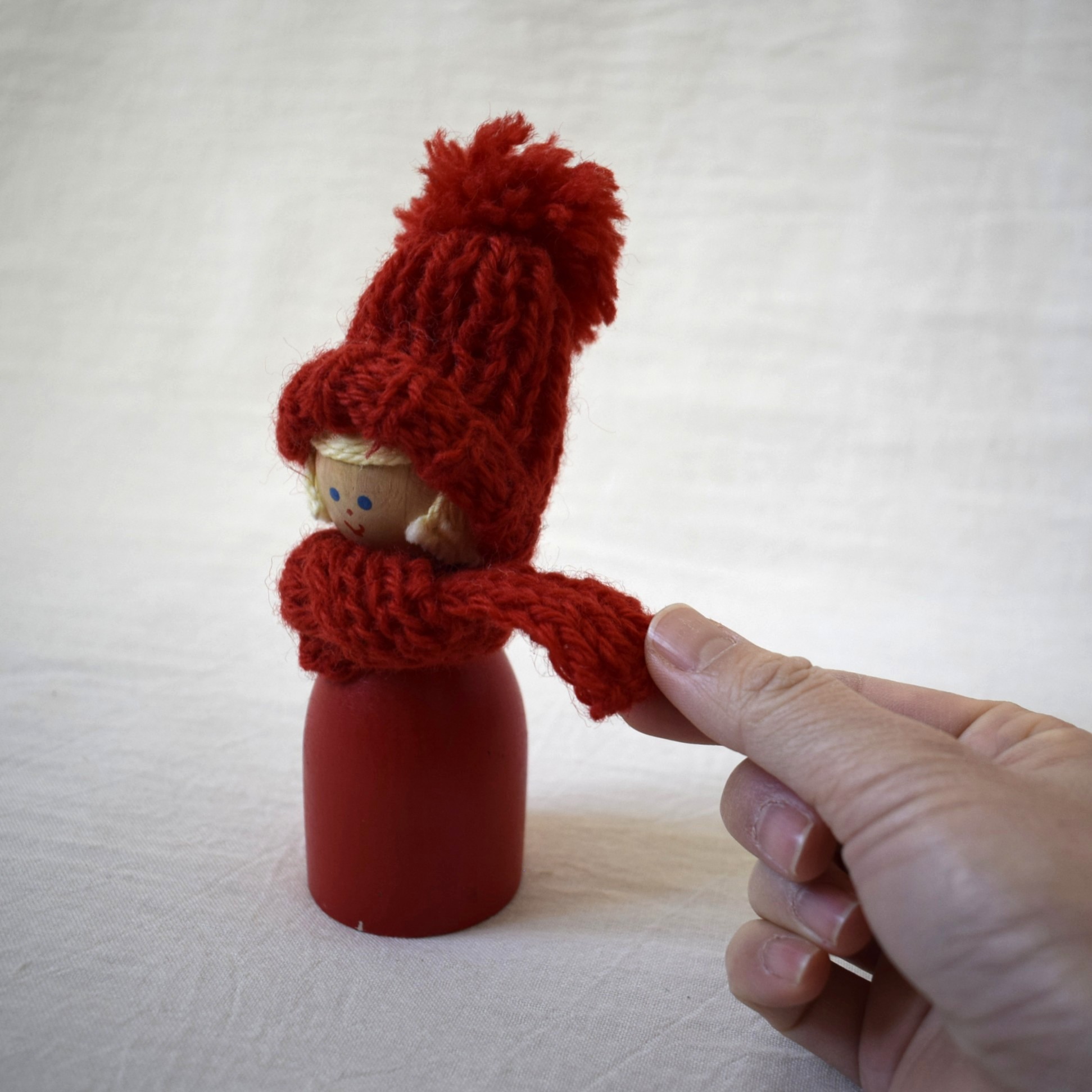 こちらの作品は、手作りの帽子とマフラーがチャームポイントです。