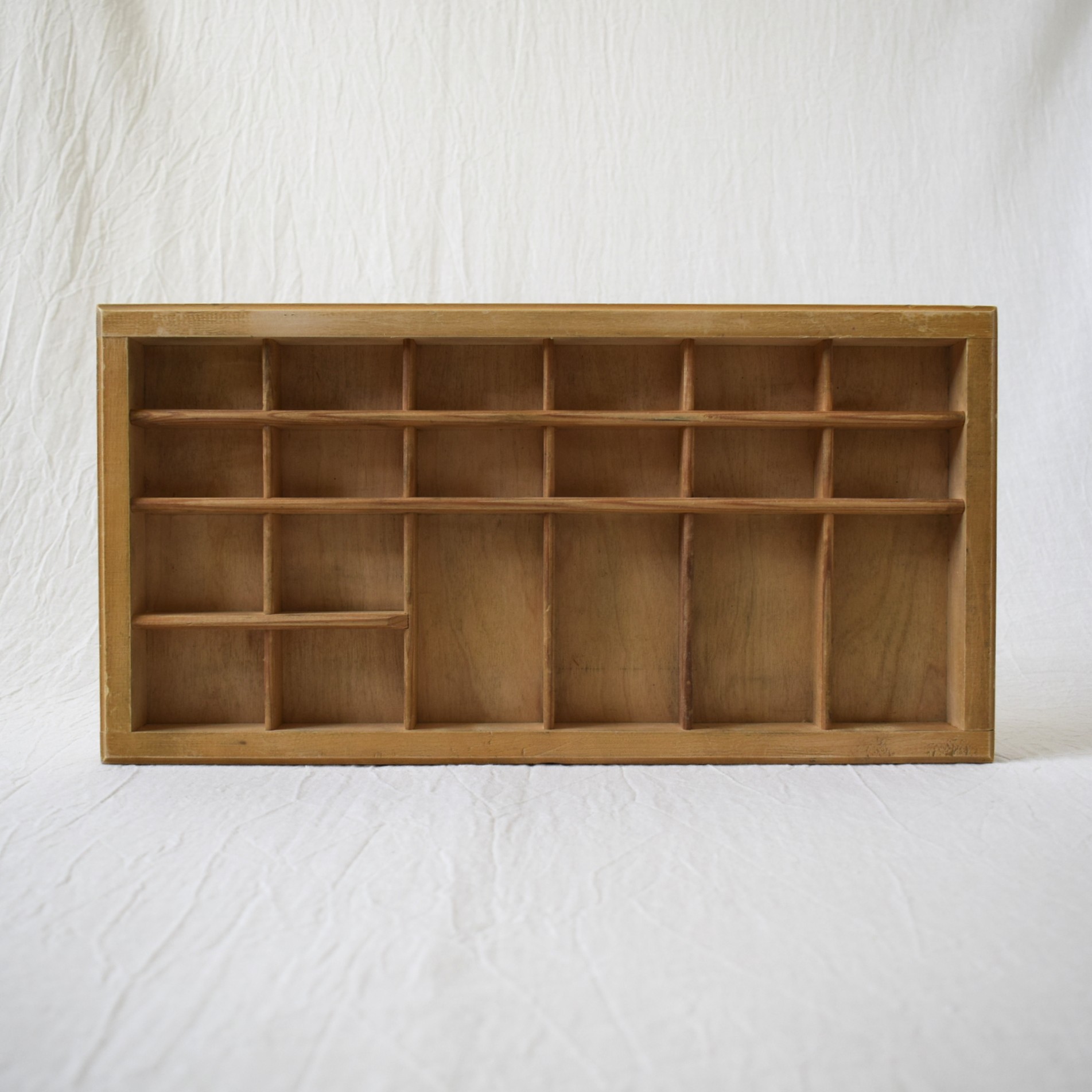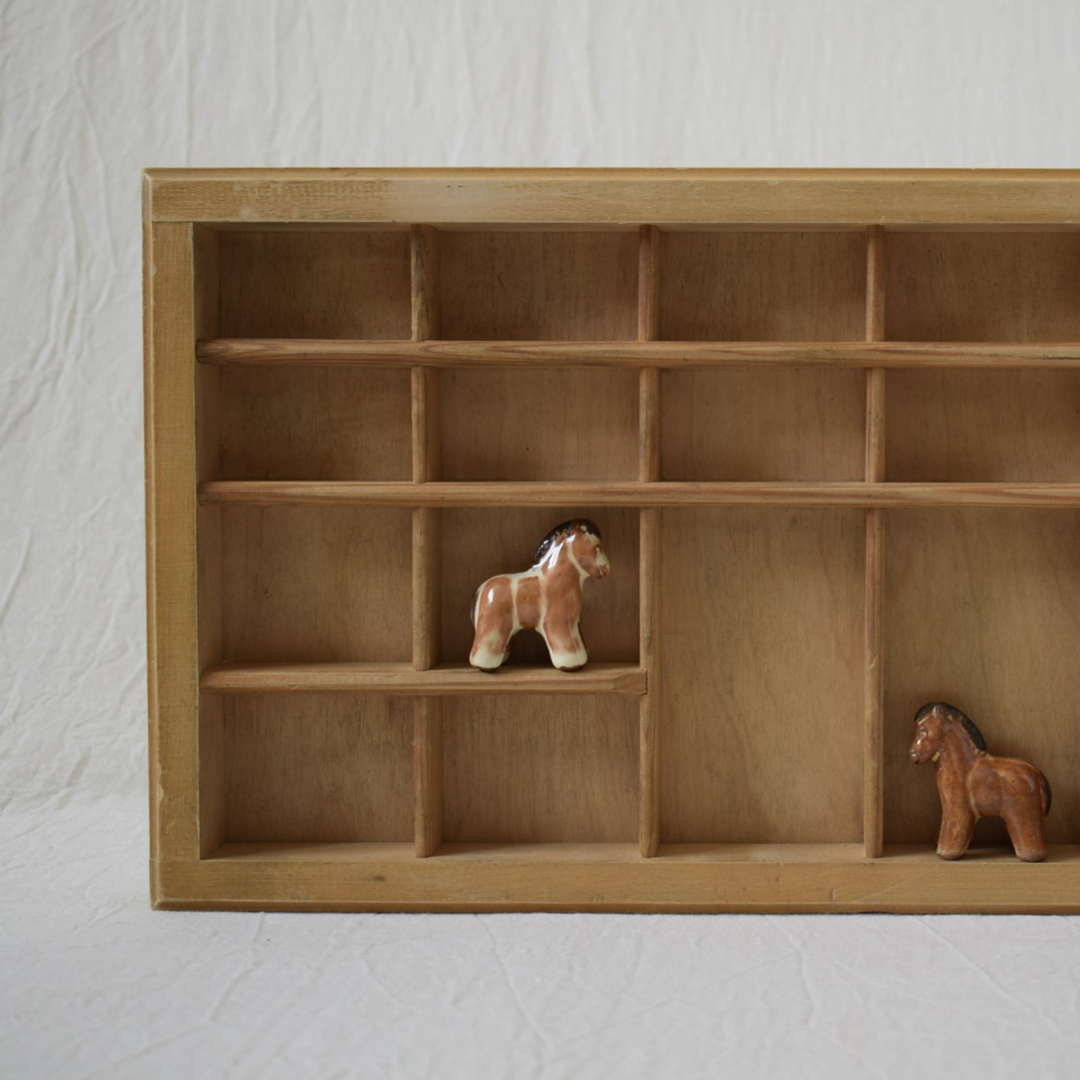 小さな仕切りごとに、お気に入りの置物を飾って楽しめます。