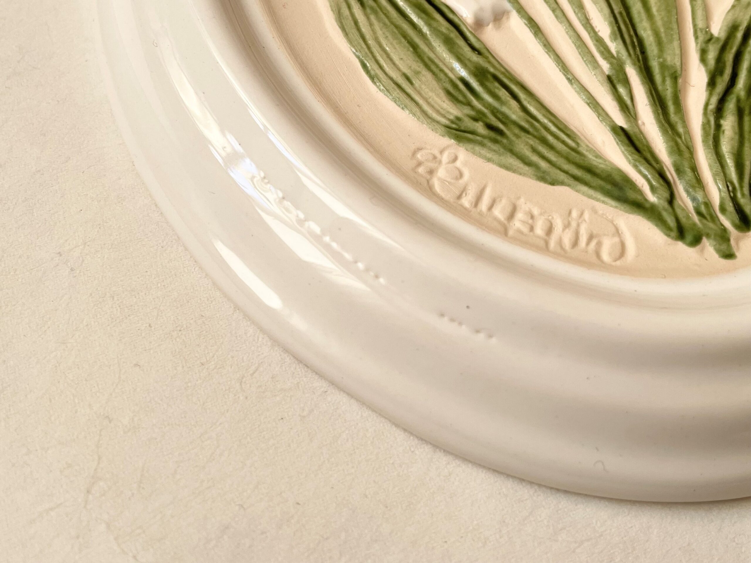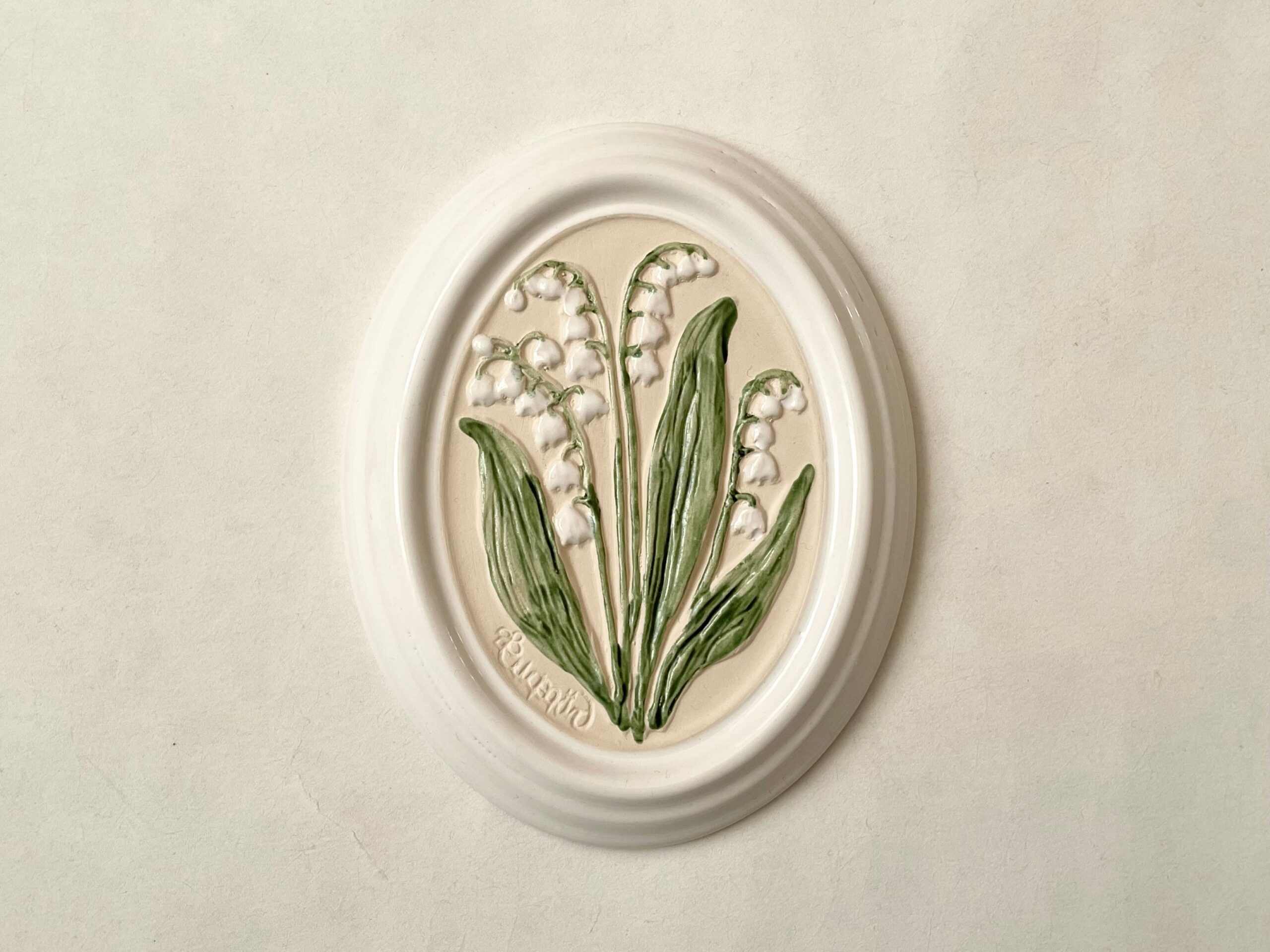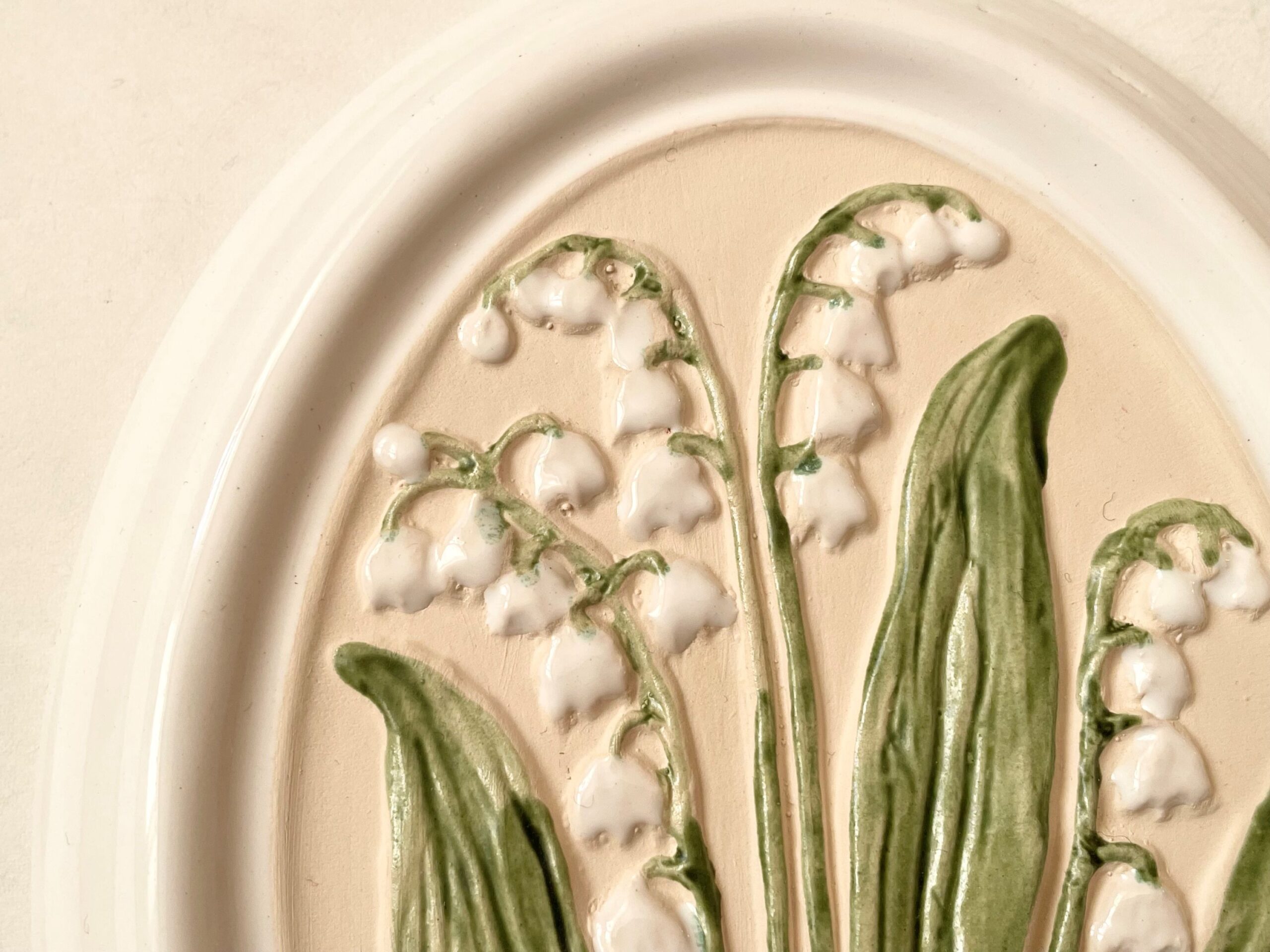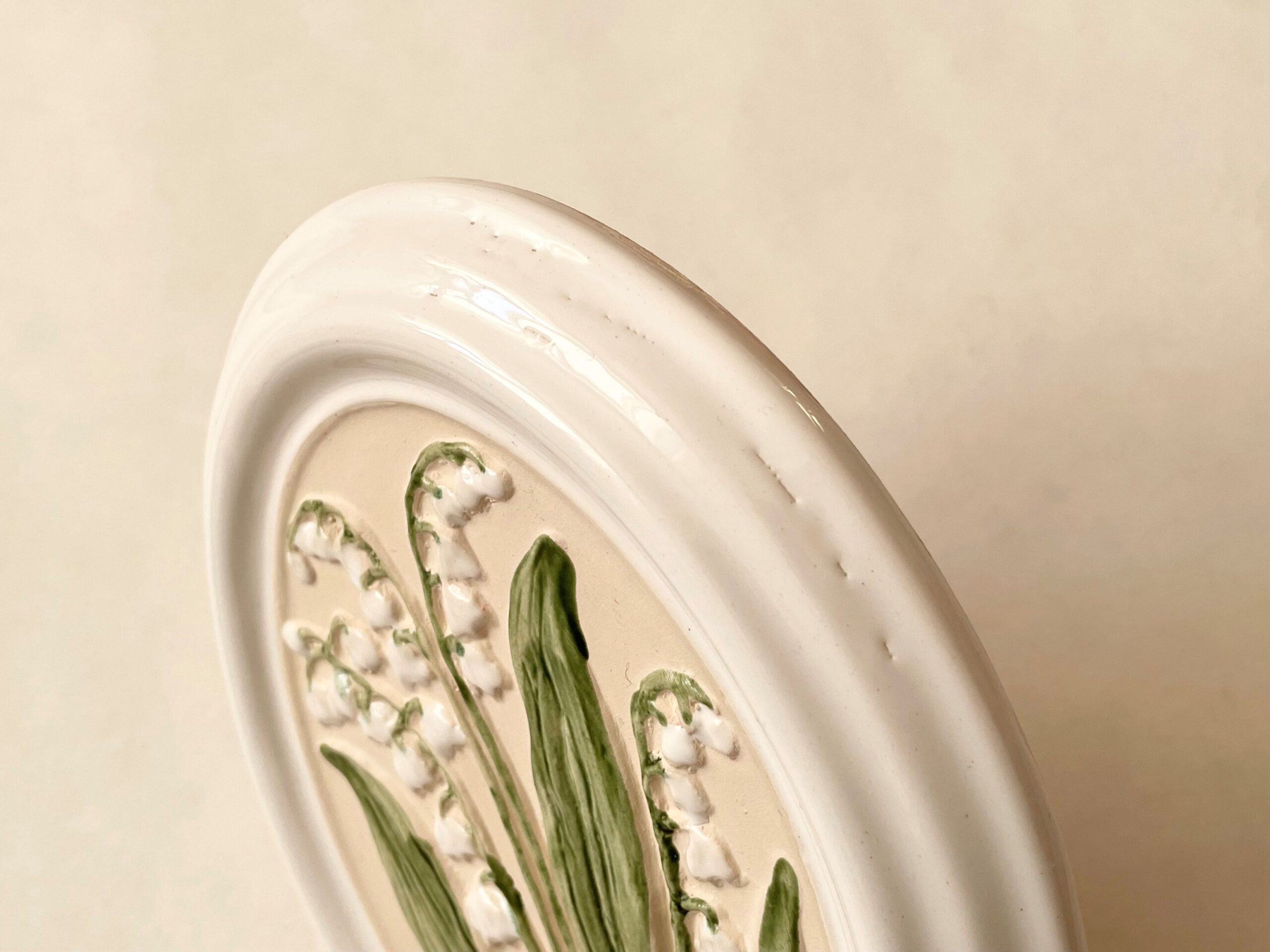 スズラン、白フチの窪み付近に釉薬がかかりきっていない箇所あり。 拡大画像をご覧ください。 こちらは製造時にできたものですが、少し考慮し価格¥4,300